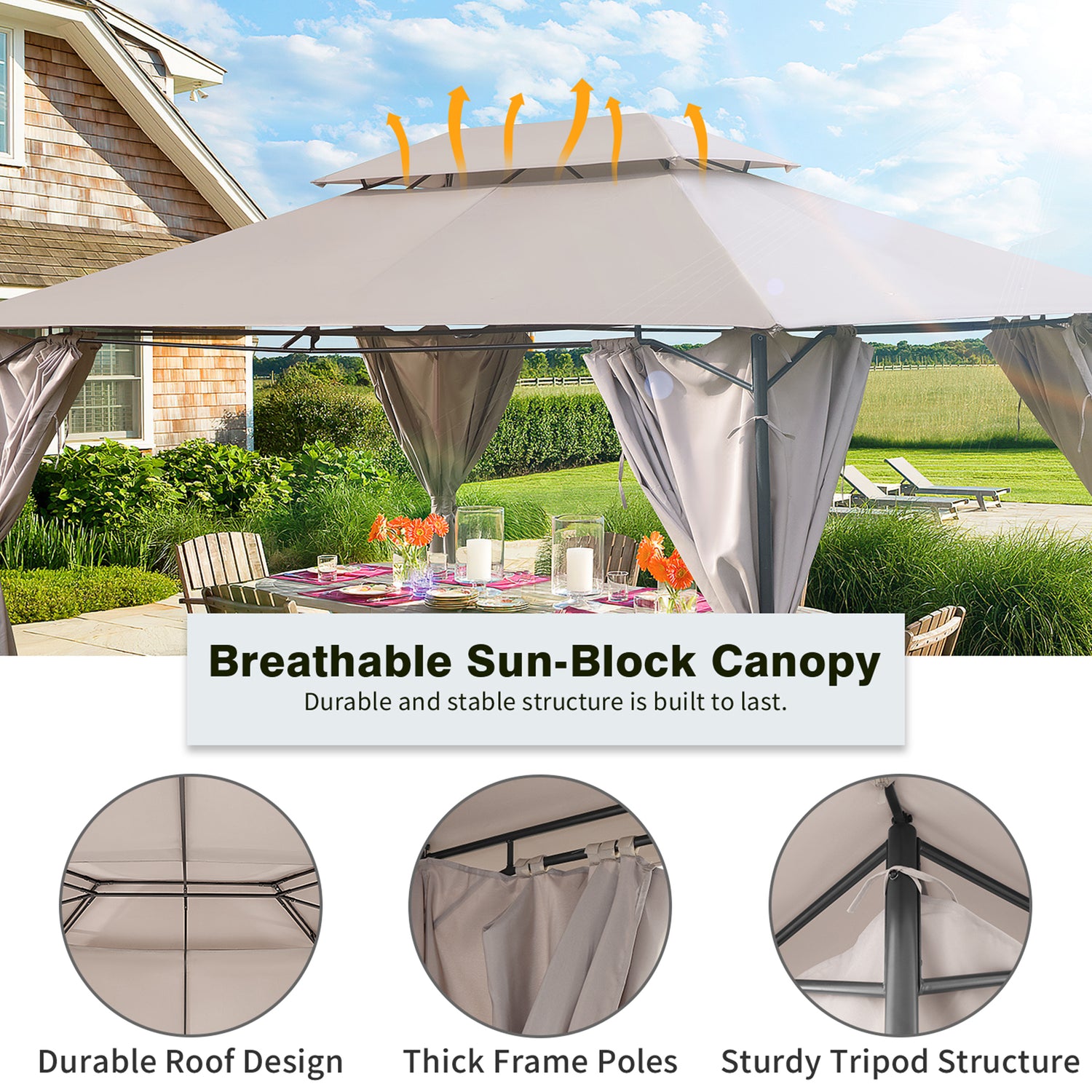 10' x 13' Gazebo for Patios, Double Roof Gazebo with Mosquito Netting for Shade and Rain, Outdoor Canopy Tent for Backyard, Garden, Lawn, Deck, Khaki, Y022