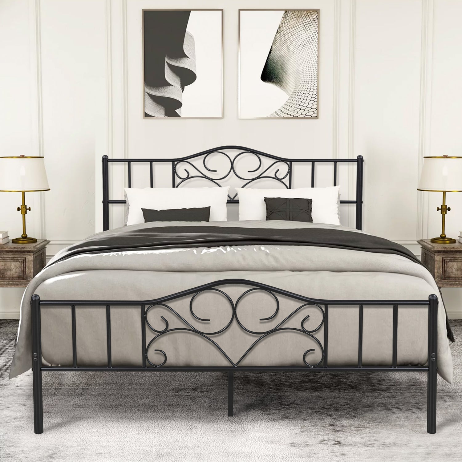SYNGAR's new minimalist style metal platform bed frame is the perfect addition to any bedroom, this platform bed frame uses simple lines and black metal to create a modern feel, suitable for every style of bedroom from retro, modern, luxury, and more, this bed frame is a heavy-duty Constructed from steel, 16 metal slats, and a central support rod provide strong and powerful support. The headboard frame allowing the spine to fit loosely against the backrest for comfort when reclined for better relaxation. This metal queen bed frame is scientifically designed so you can assemble it in 30 minutes.