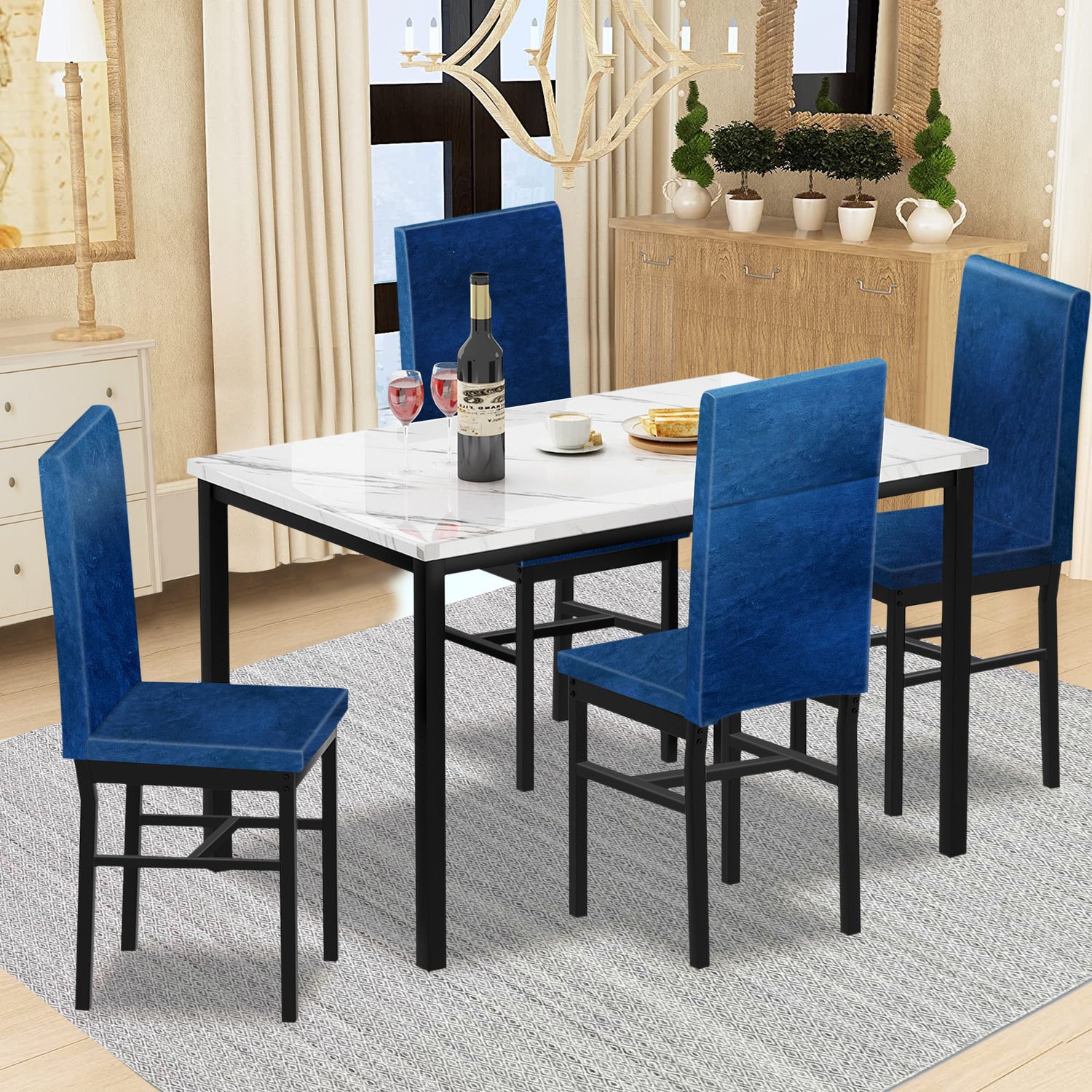 5 Piece Dining Set, Modern Dining Table and Chairs Set for 4, Kitchen Dining Table Set with Faux Marble Tabletop and 4 Velvet Fabric Upholstered Chairs, for Small Space, Breakfast Nook, D8925