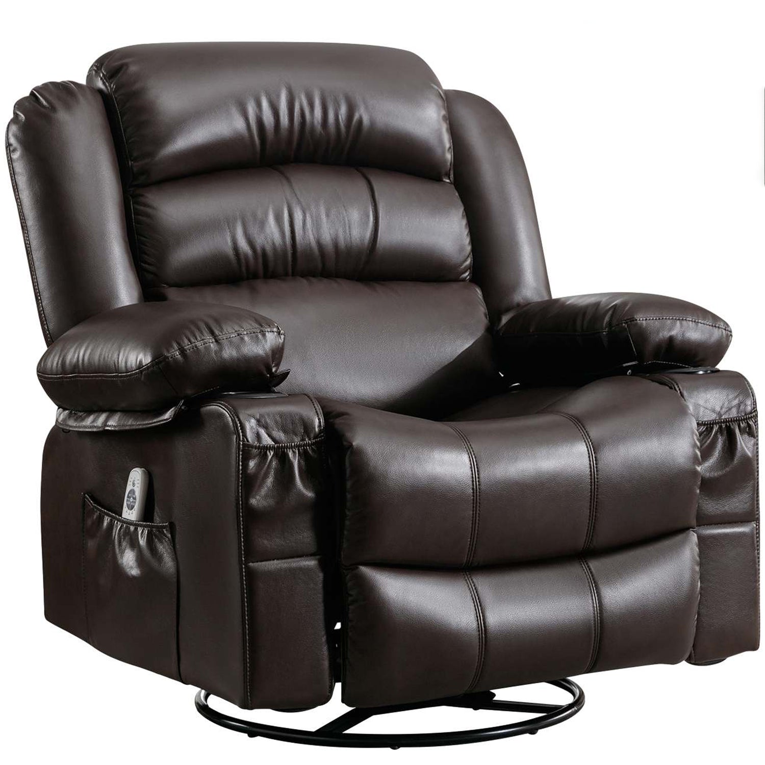 SYNGAR Swivel Rocker Recliner Chair for Living Room, Manual Reclining Chair with Heat and Massage Function, Cup Holders, USB, PU Leather Rocking Sofa Glider Chair for Bedroom Home Theater, Black