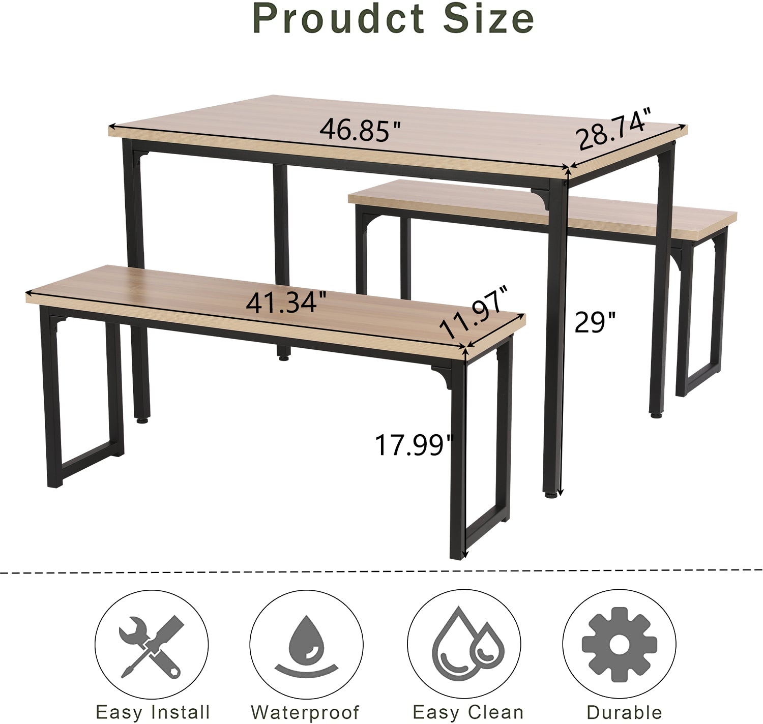 [High-quality Dining Table Set] - Manufactured for high-grade durability, this set features a sturdy steel-reinforced frame with a wooden surface that ensures not only durability but also easy cleaning for daily use. This dining set can easily support a party of four; Each bench can hold up to 330 pounds, while the table boasts a high 220-pound capacity.