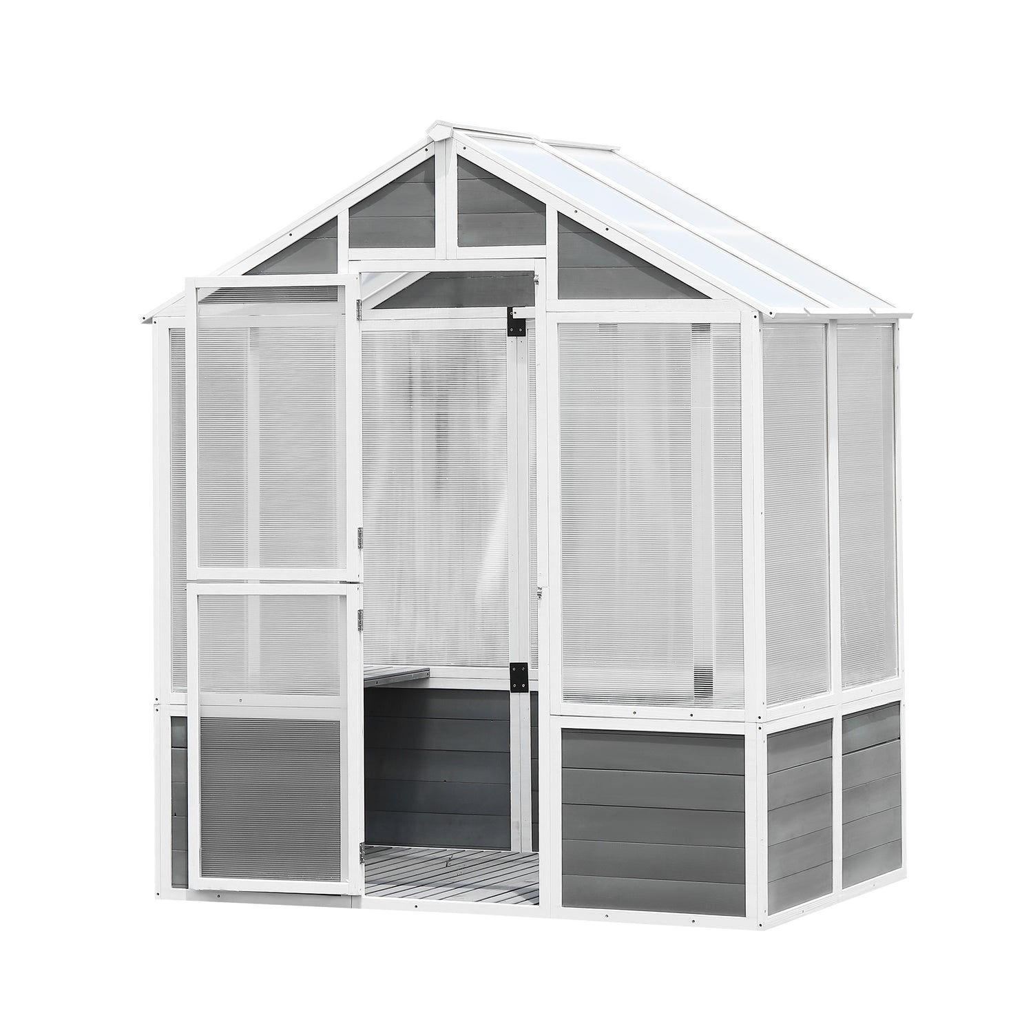 Syngar 6' x 4' Walk-in Greenhouse for Outdoor, Garden Polycarbonate Greenhouse with Sturdy Cold Wooden Frame, Drain Hole and Front Entry Doors, Backyard Greenhouse for Plants in Winter, D6343