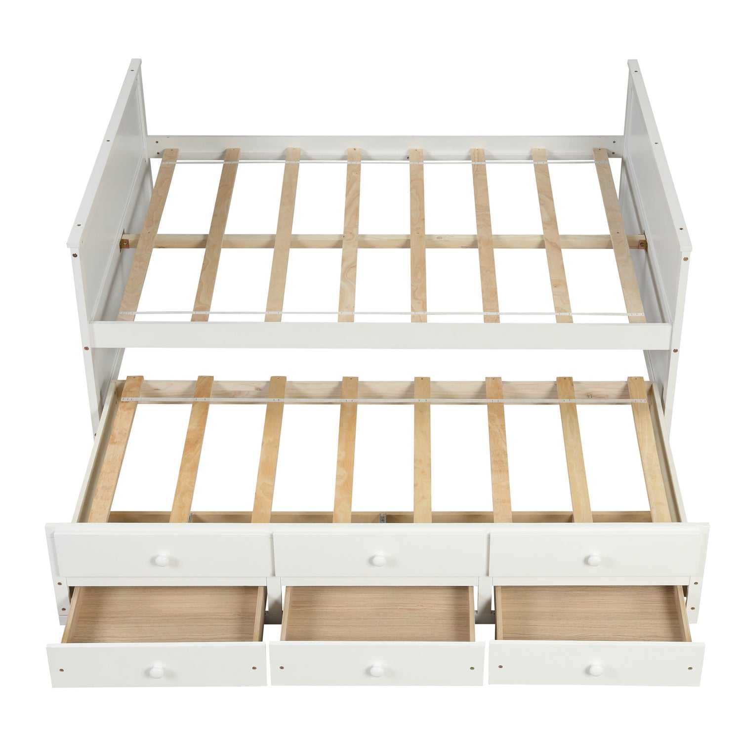 SYNGAR Bed Frame with Storage, Full Platform Bed with Trundle and 3 Storage Drawers for Kids Teens Adult, White, LJ2569