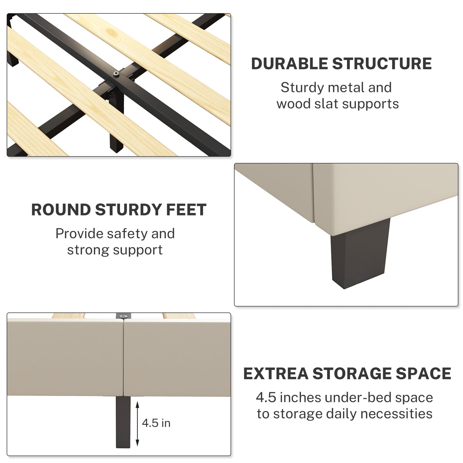 SYNGAR Beige Fabric Upholstered Platform Bed Frame Full Size with Elegant Headboard, Wood Frame Bedroom Furniture with Strong Slat Support, No Box Spring Needed, Noise Free, Easy Assembly
