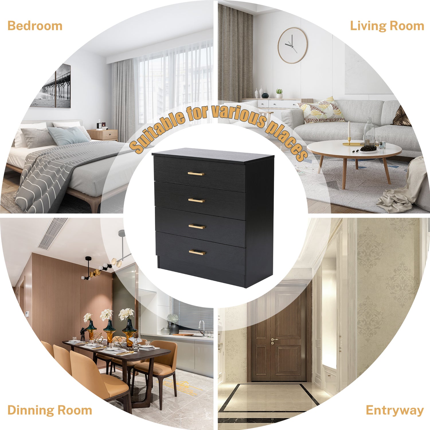 SYNGAR Black 4 Drawer Dresser, Chest of Drawers for Bedroom, Modern Storage Cabinet Dresser Organizer Unit with Handle for Living Room, Closet, Hallway, Nursery