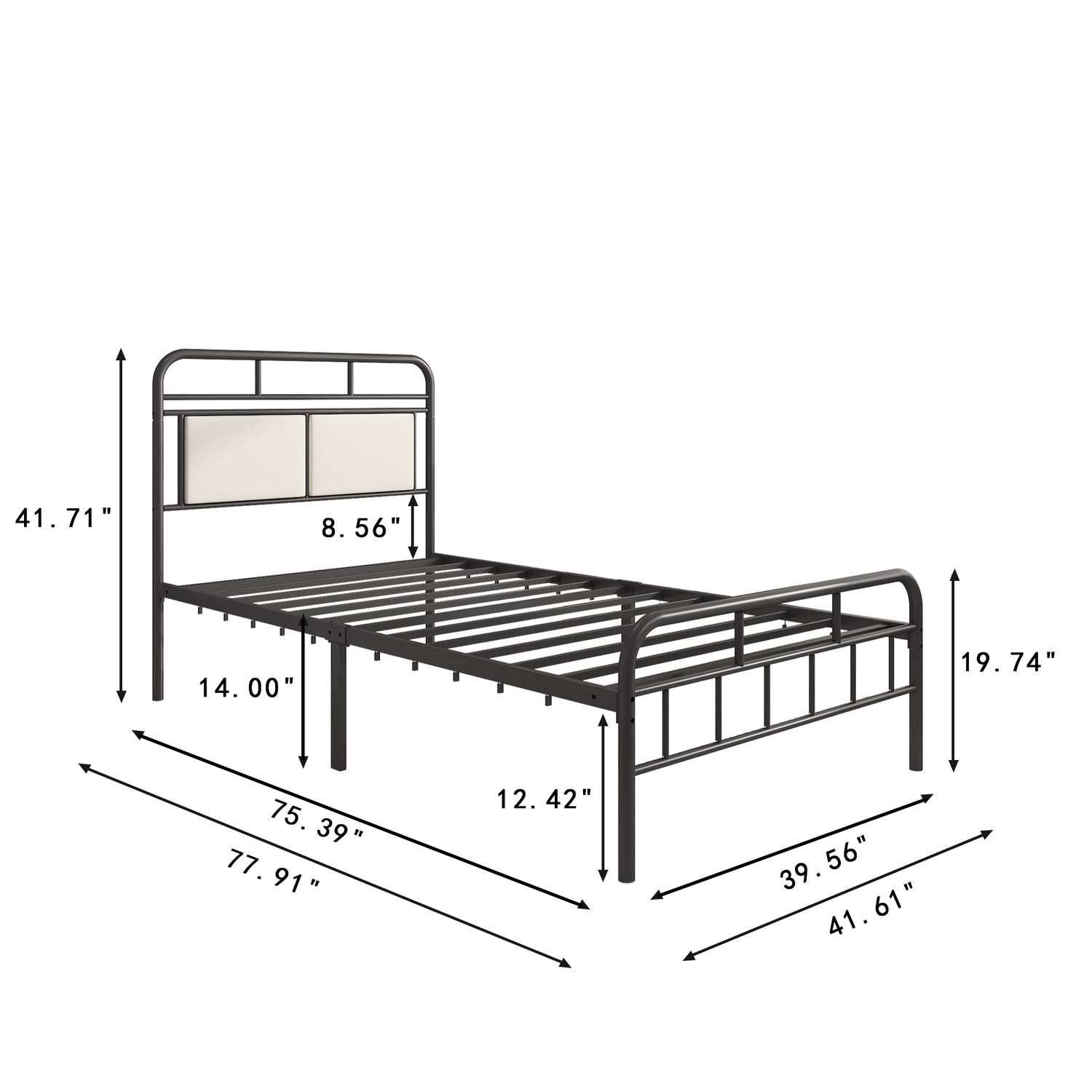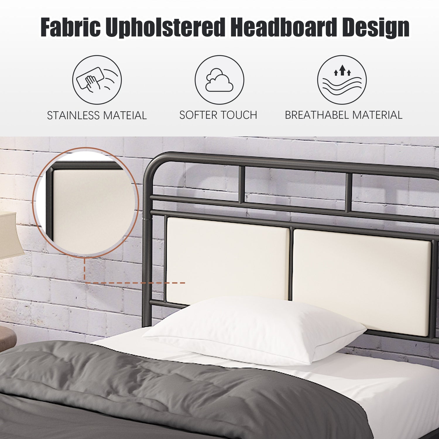 Metal Bed with Upholstered Headboard and Footboard
