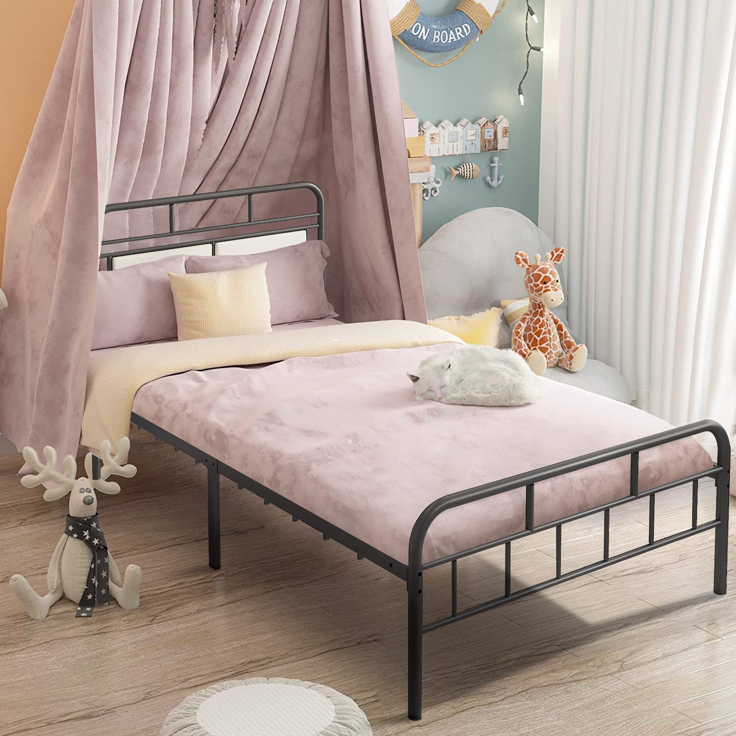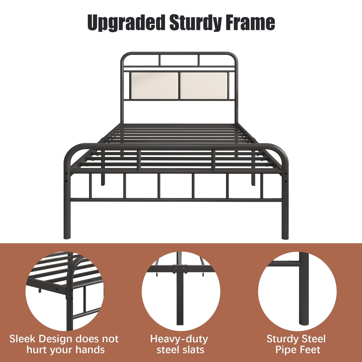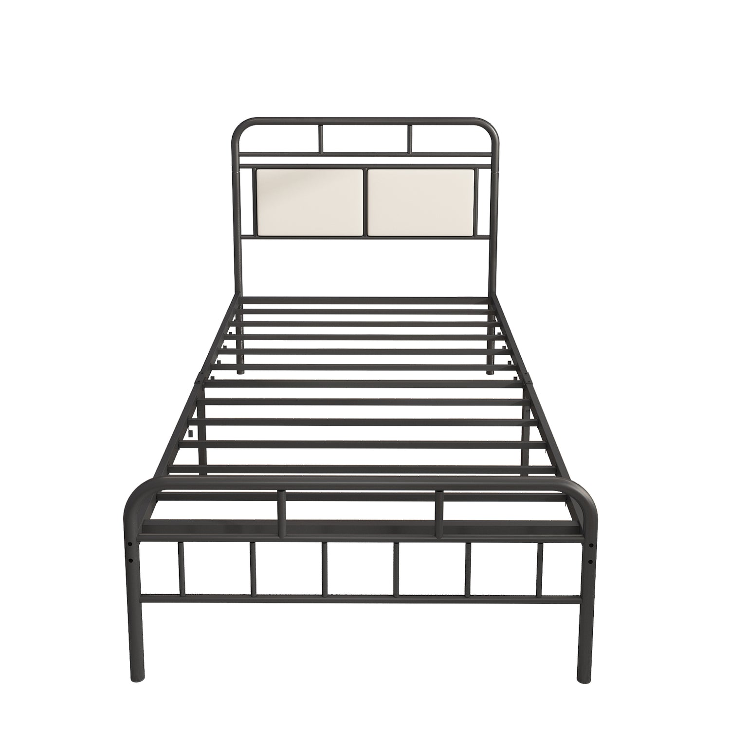 SYNGAR Black Iron Platform Bed Frame Twin Size with Upholstered Headboard, Footboard, Metal Twin Bed Frame Mattress Foundation with 400LBS Load Capacity, No Box Spring Needed, Easy Assembly