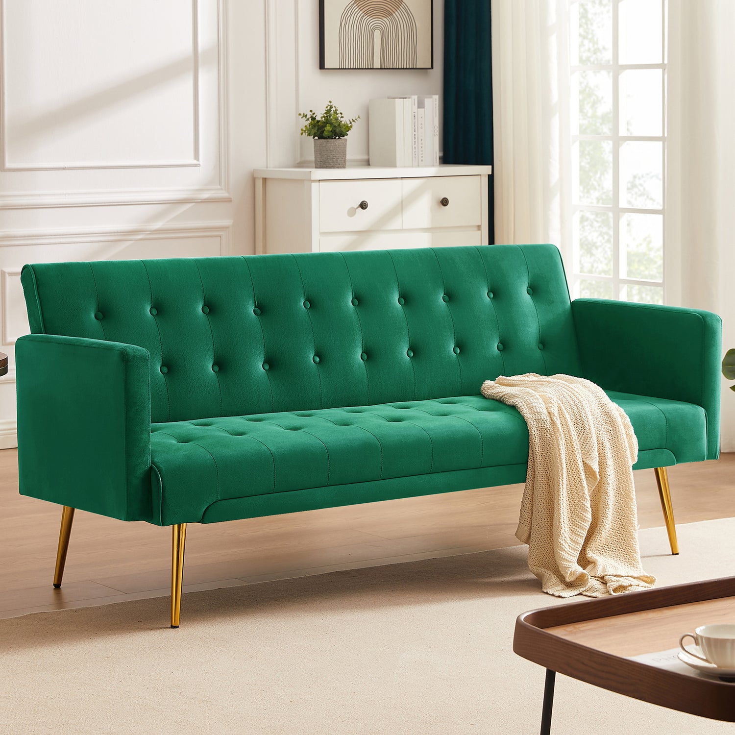 Made of durable velvet and a solid metal frame, the SYNGAR futon sofa bed is simple and quick to assemble, modern in design, and affordable, very suitable for your beautiful living room or bedroom. This is a sofa bed that is very worth buying and the durable modern futon sofa is versatile for your use.
