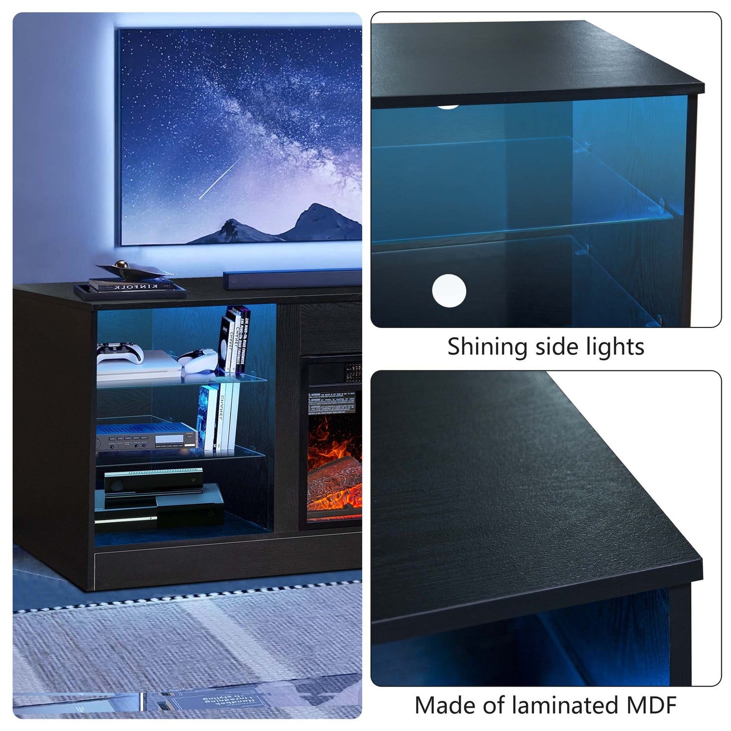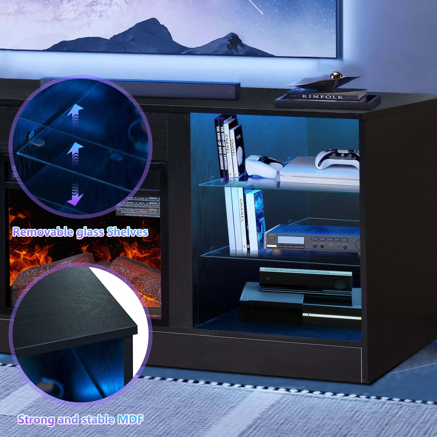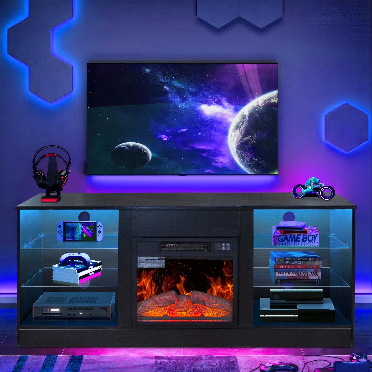 Introducing the SYNGAR Electric Fireplace TV Stand, designed to accommodate for 60" TV. This modern entertainment center seamlessly combines style and functionality, making it the perfect addition to your living room. Crafted from high-quality wood, this TV stand features an 18" electric fireplace with a remote control, providing both warmth and ambiance. The unit is equipped with adjustable shelves and comes with LED lights that offer 16 color options, allowing you to customize your space to suit any mood or occasion.