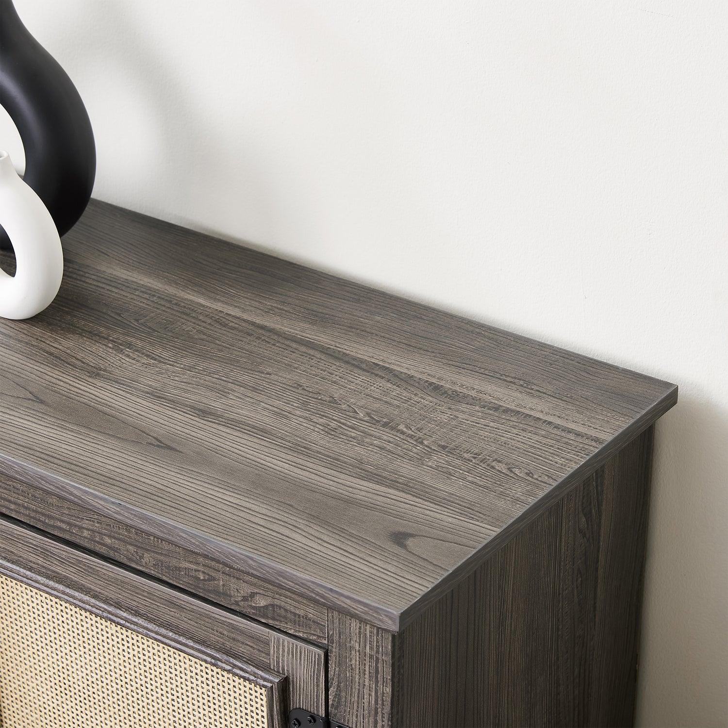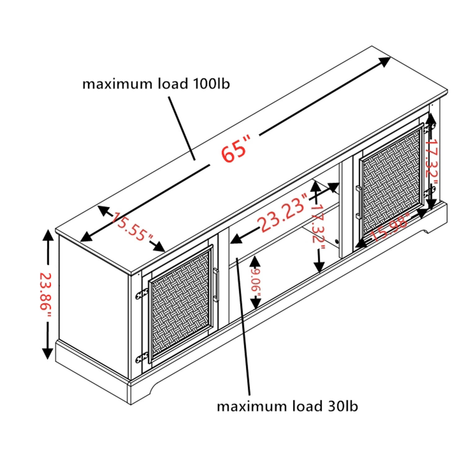 This TV Cabinet also includes easy cable management with a wire pass-through on the back, ensuring a clean and organized setup for your media devices. The handcrafted natural rattan decorating surface adds a two-tone blend of midcentury modern and boho style, making this Media Console a cozy yet stylish focal point in your home.