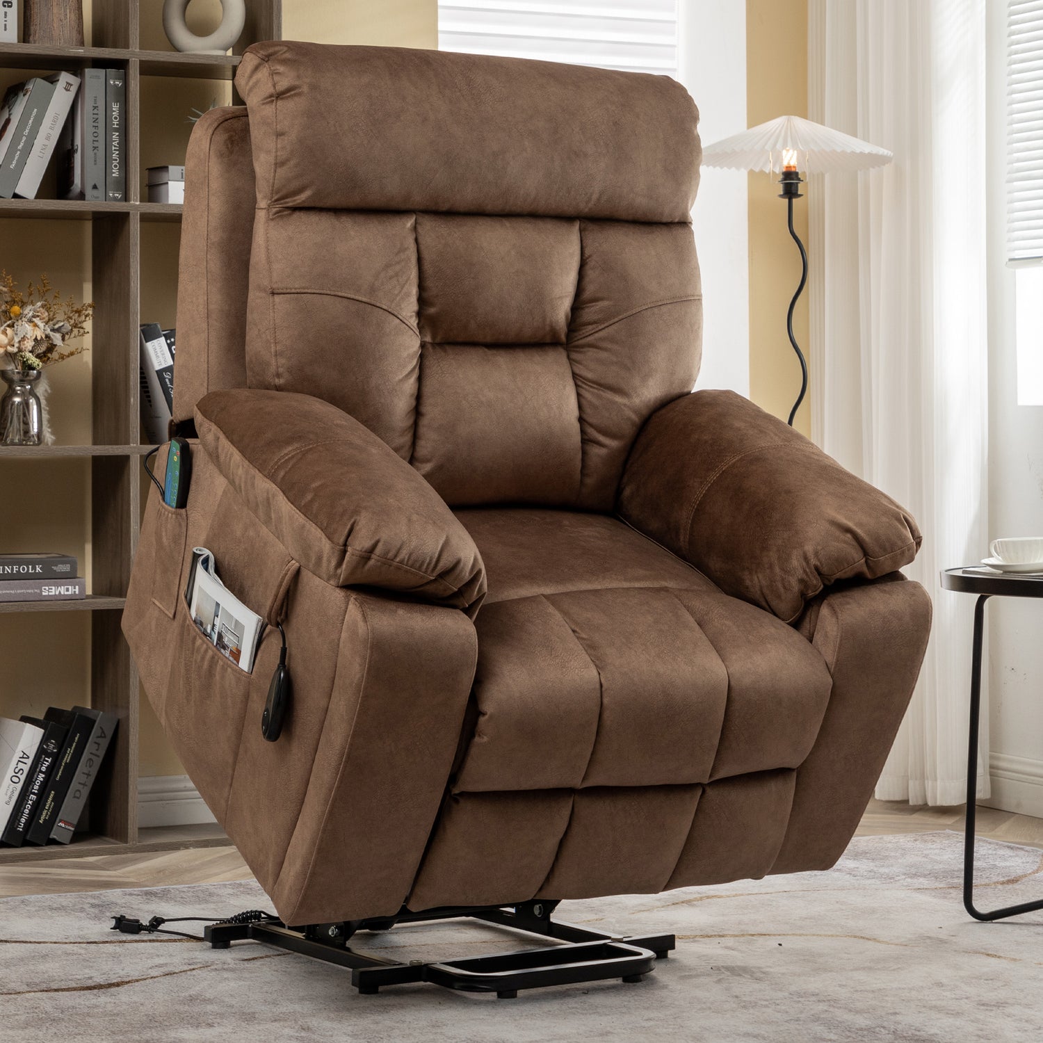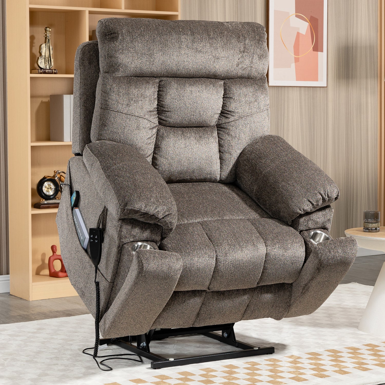 SYNGAR Electric Lift Recliner Chair with Heat and Massage, Oversized Recliner with Hidden Cup Holder for Living Room, Single Recliner Sofa with 26" Width Seat, Easy Assembly, Light Brown