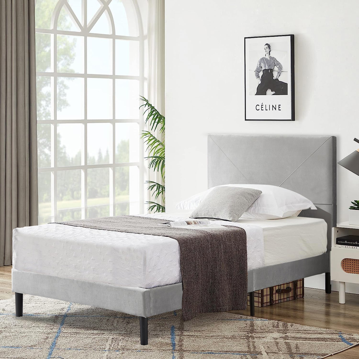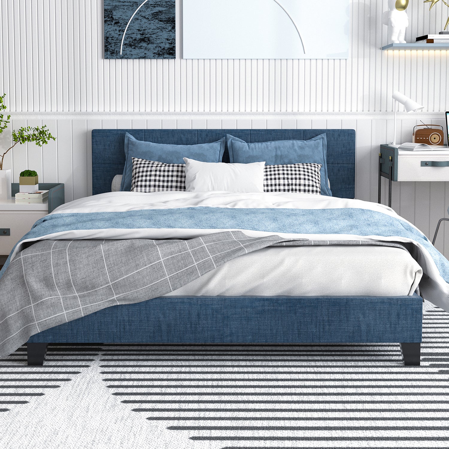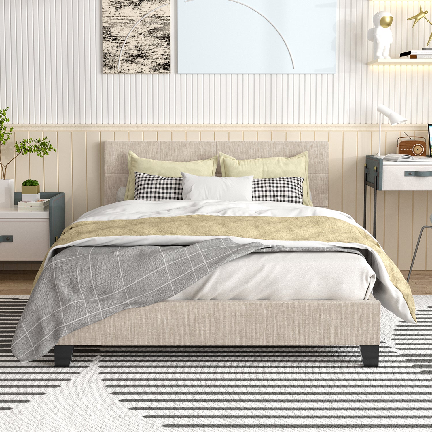 Including a comfortable headboard, sturdy frame, strong wood slats, and support legs of the bed to support your memory foam, latex, or spring mattress (not included). Made of solid quality upholstered wood, this platform bed is very durable and sturdy and can serve your family for years.