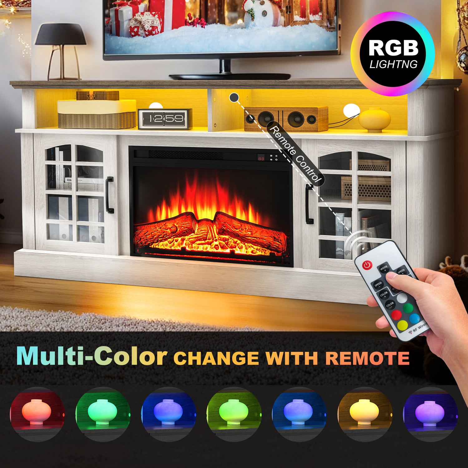 <p><b>Upgrade your home décor with our modern and stylish Fireplace TV Cabinet. This elegant unit features transparent glass cabinet doors on both sides, offering ample storage for your media essentials. The sleek design is complemented by changeable LED lights, adding a vibrant touch to any room. Equipped with two cable management systems, it ensures neat and organized wiring. The electric fireplace offers multiple functions, including a timer, flame color adjustments, and temperature control, all conveniently managed via the included remote. Enjoy effortless ambiance without leaving your seat, making this cabinet a perfect blend of style and functionality.</b><br></p>