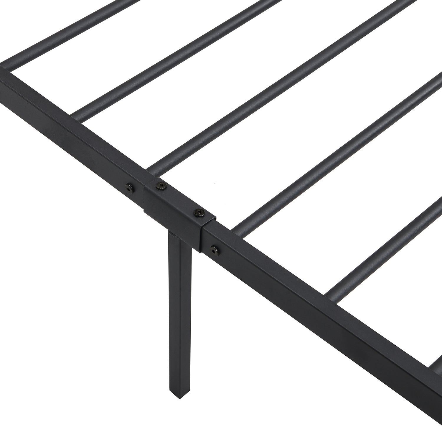 Including a metal vintage wooden headboard, strong metal slats, and support legs of the bed to support your memory foam, latex, or spring mattress (not included). The large under-bed space is available for you to store your stuff, convenient, and space-saving. Made of solid quality MDF and Iron, this platform bed is very durable and sturdy and can serve your family for years.