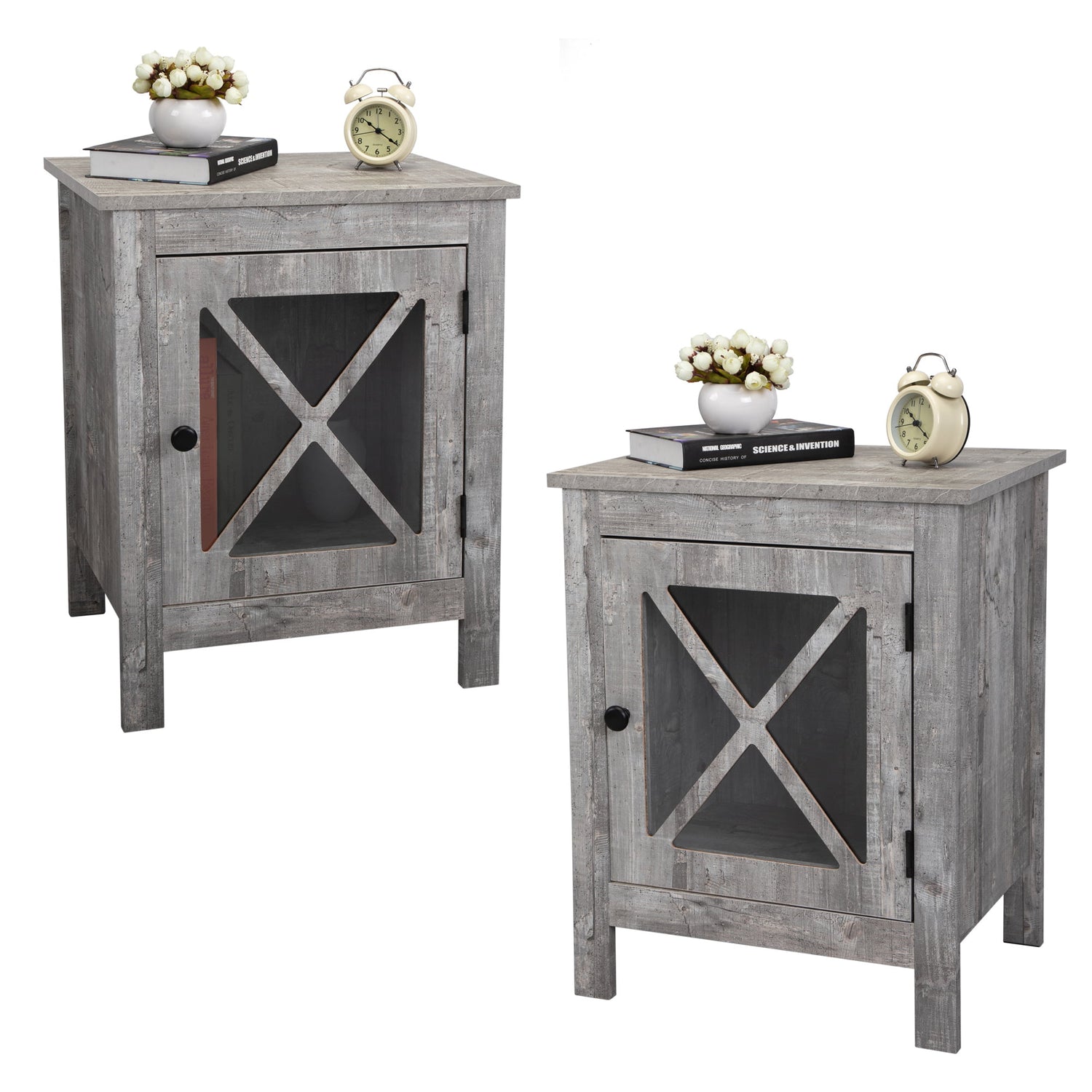 SYNGAR Gray Farmhouse Nightstand Set of 2, Rustic Side Table End Table with Storage Drawer and Door for Bedroom Living Room