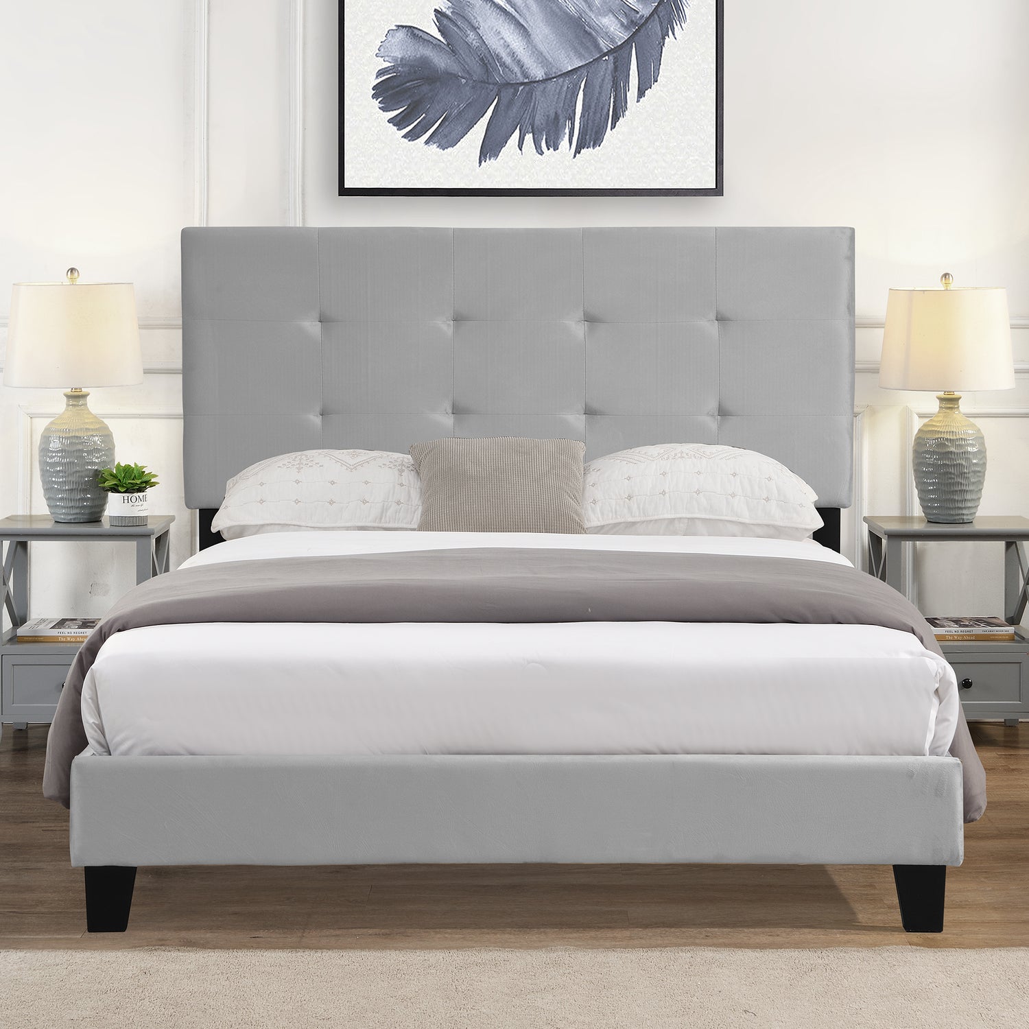 SYNGAR Gray Velvet Upholstered Platform Bed Frame Full Size with Elegant Headboard, Wood Frame Bedroom Furniture with Strong Slat Support, No Box Spring Needed, Noise Free, Easy Assembly