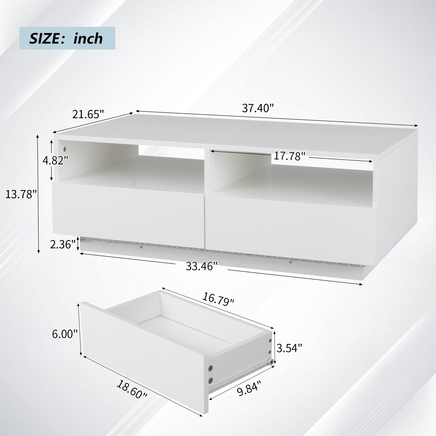 SYNGAR LED Coffee Table with 4 Storage Sliding Drawers and Open Shelves, Modern High Glossy Center Table Rectangular with Multiple Colors LED Lights for Living Room Bedroom, Easy Assembly, White