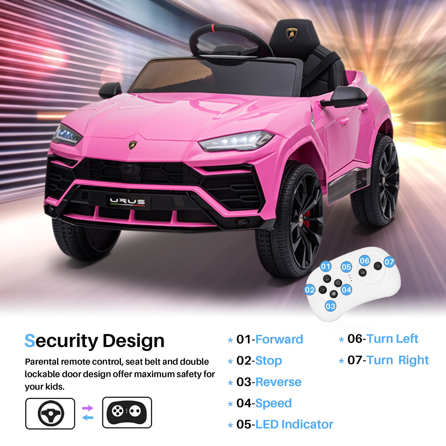 SYNGAR Licensed Lamborghini 12 V Powered Ride on Cars with Remote Control, 3 Speeds, LED Lights, MP3 Player, Horn, Kids Electric Vehicles Ride on Toy for Boys Girls, Pink