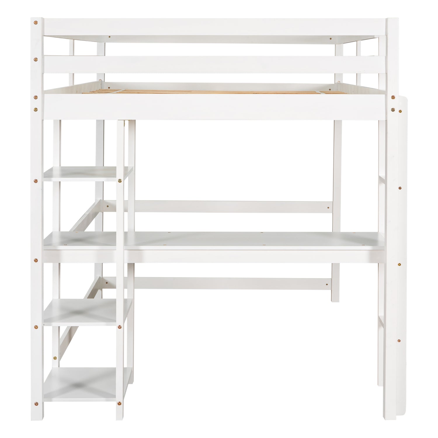 Loft Bed with Solid Desk and 4 Storage Shelves