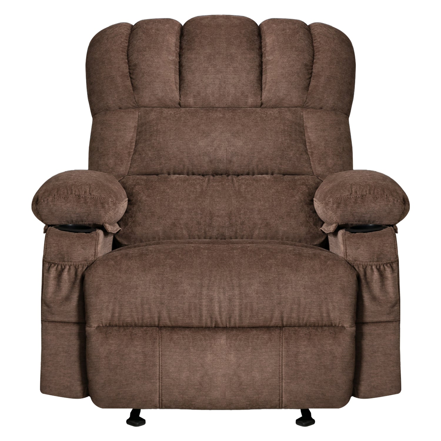 SYNGAR Manual Recliner Chair with Heat and Vibration Massage, Fabric Elderly Single Reclining Rocker Sofa with USB Charge Port, Cup Holders and Side Pocket for Bedroom Home Theater, Brown