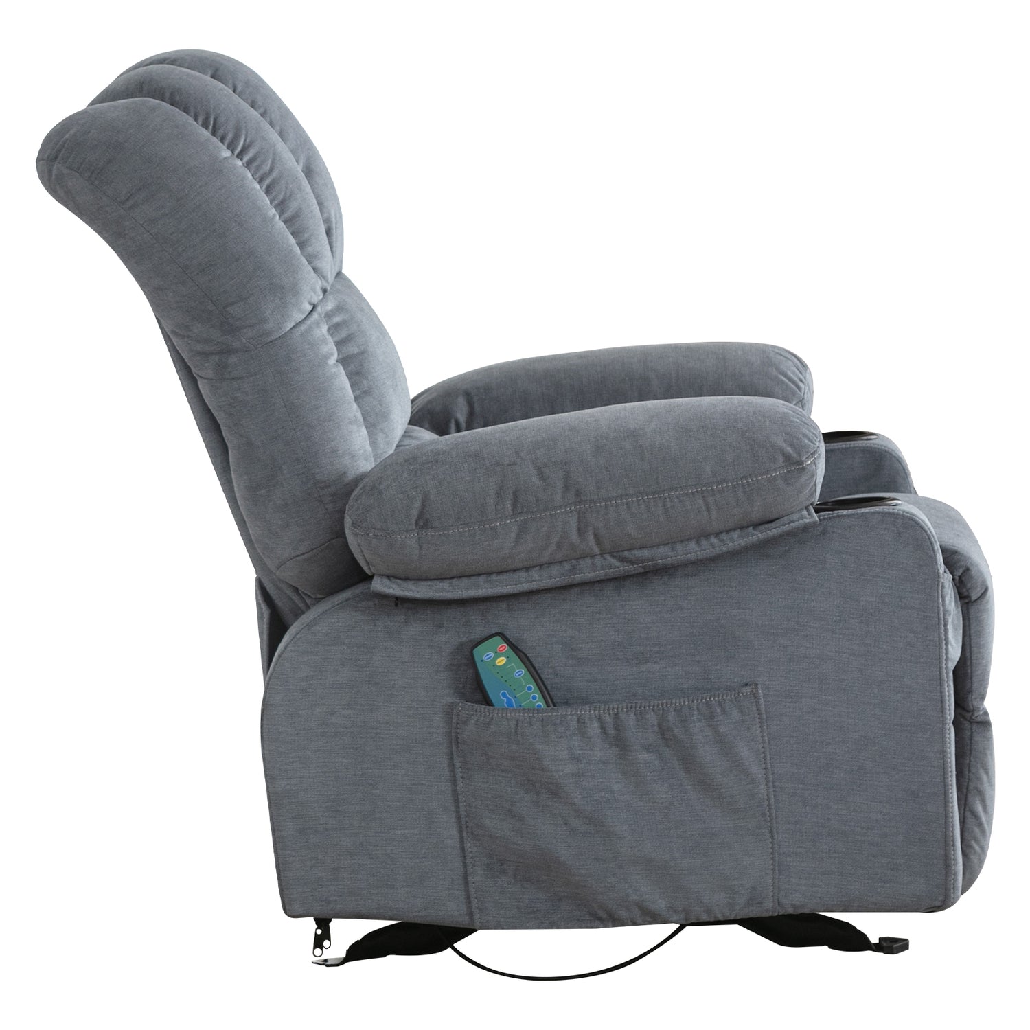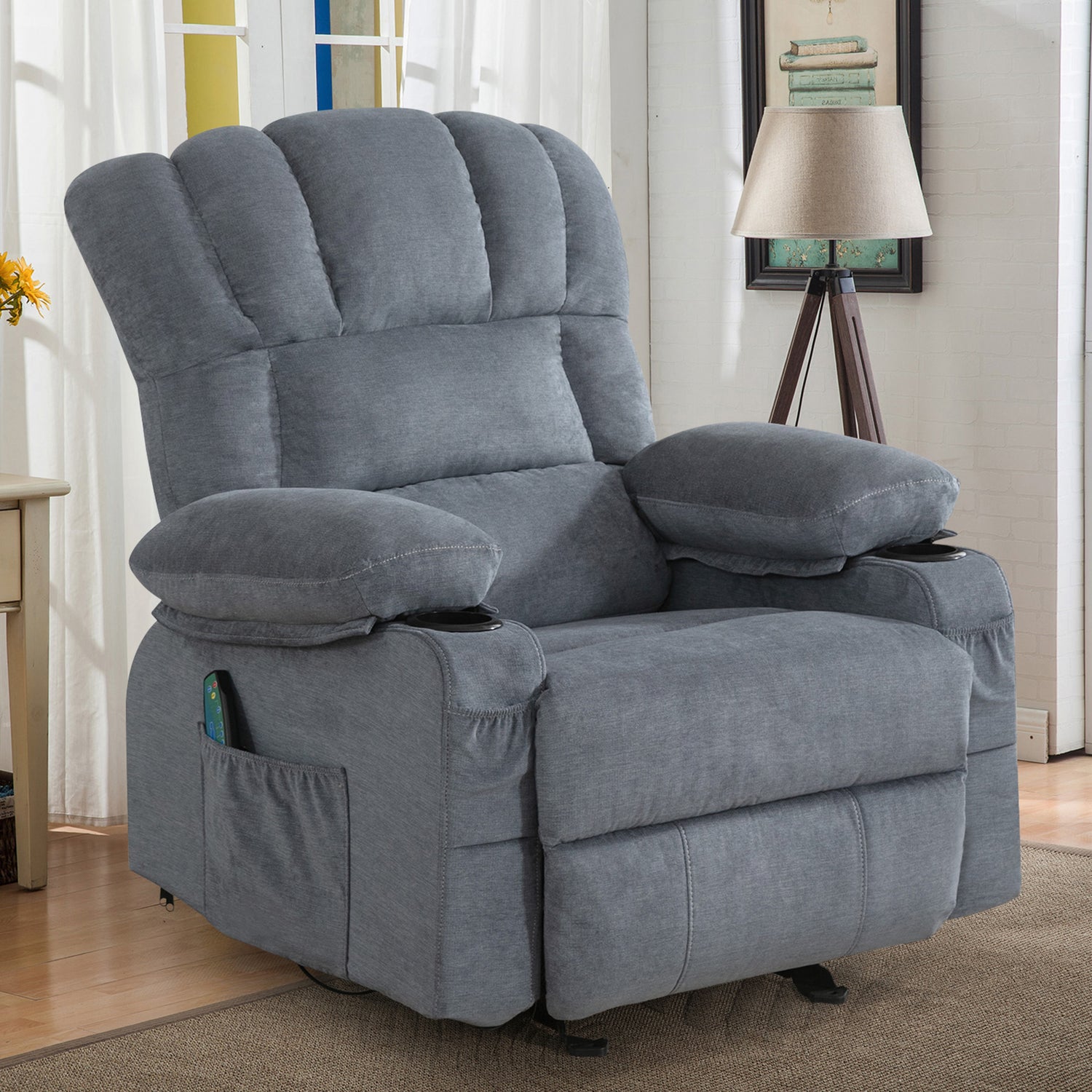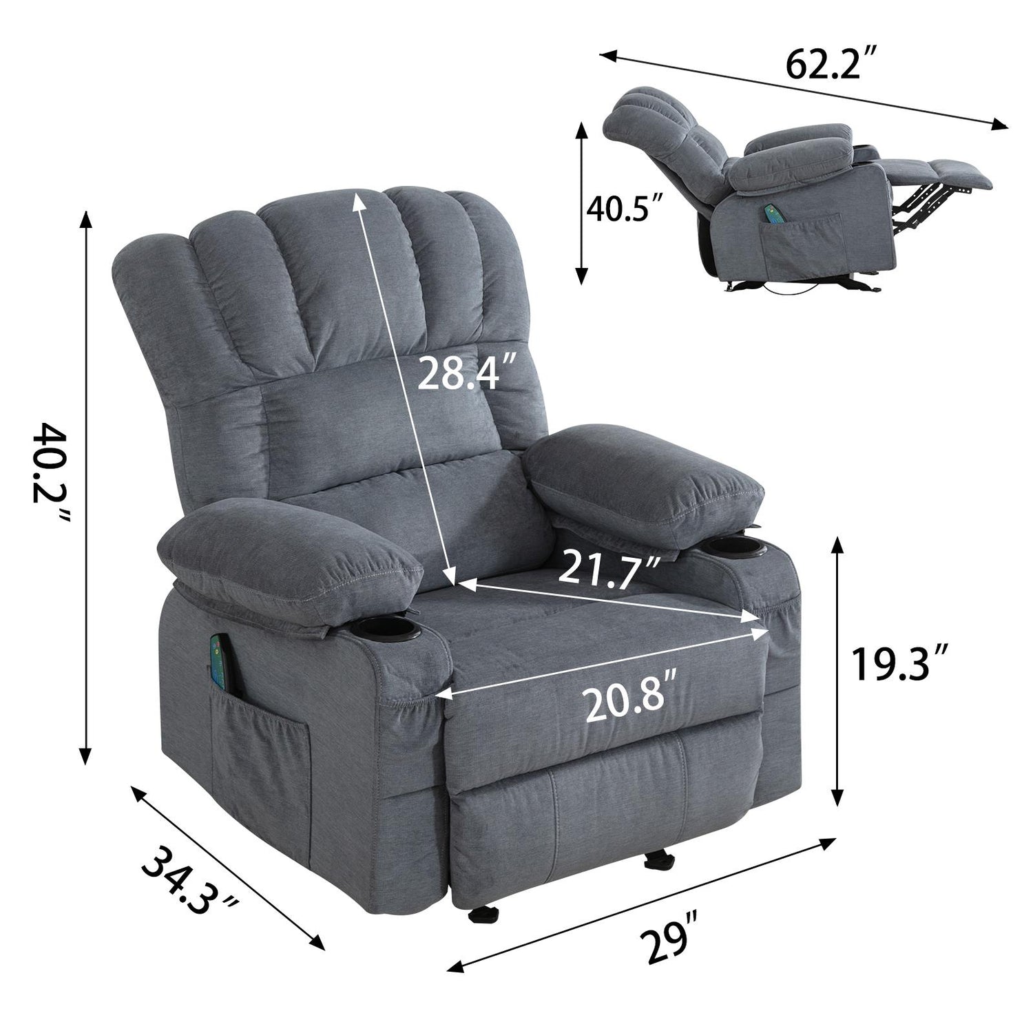 Whether reading a book, watching a movie, or taking a nap, a comfortable recliner chair can ease the stress of a busy day. Armrest for support and comfort with a high back, thick cushion, and high-grade antiskid upholstery, provide a very comfortable sitting feel and enhance safety. The 8 points massage and heat function offers you a full body massage at your home. 2 cup holders keep your thermos close at hand, and there are considerable side pockets for magazines and cell phones.