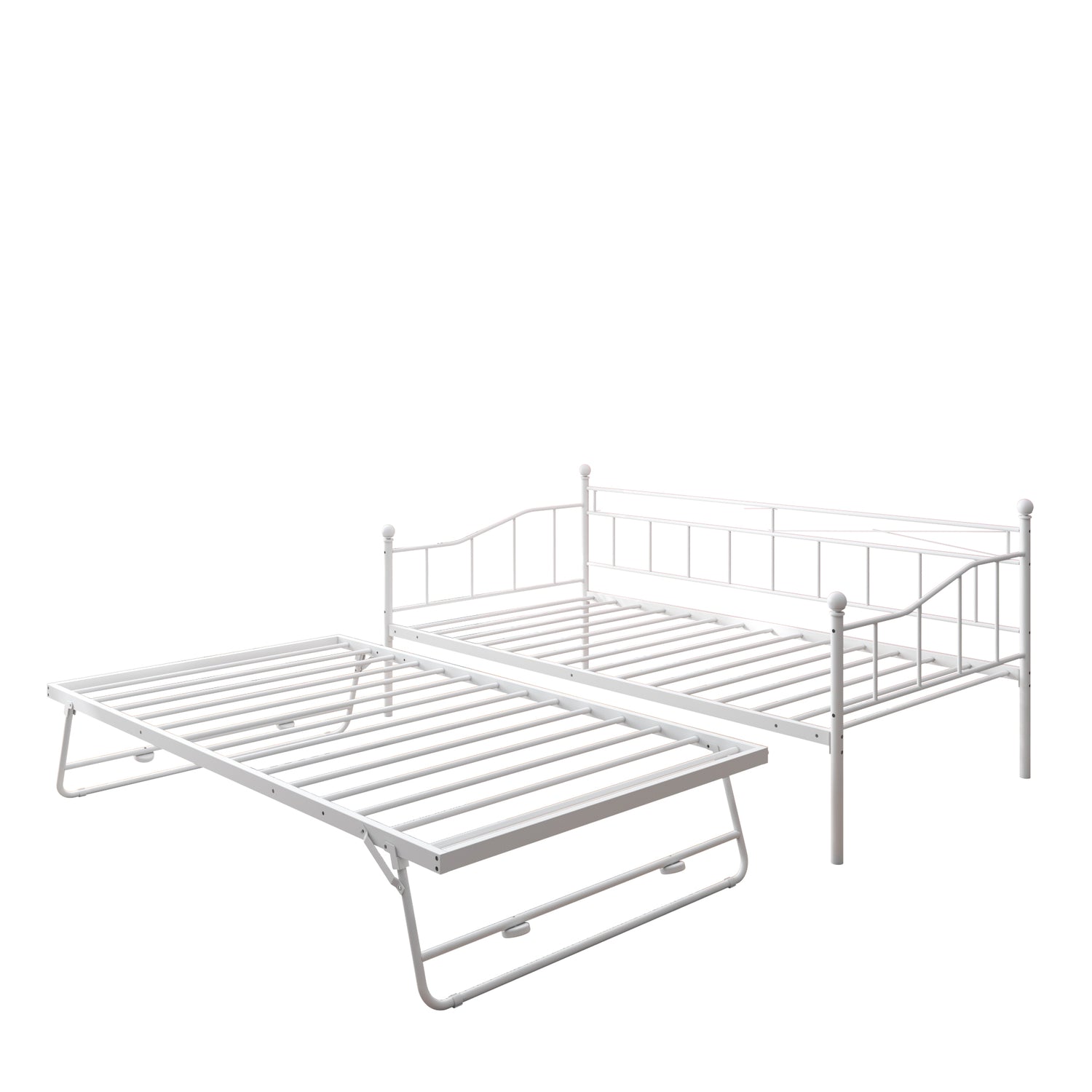 SYNGAR Metal Daybed with Trundle, Modern Home Twin Daybed with Pop Up Trundle for Living Room/Bedroom, Twin Size Sofa Bed W/ Steel Slats Support, Platform Bed Frame No Box Spring Needed, White, D6612