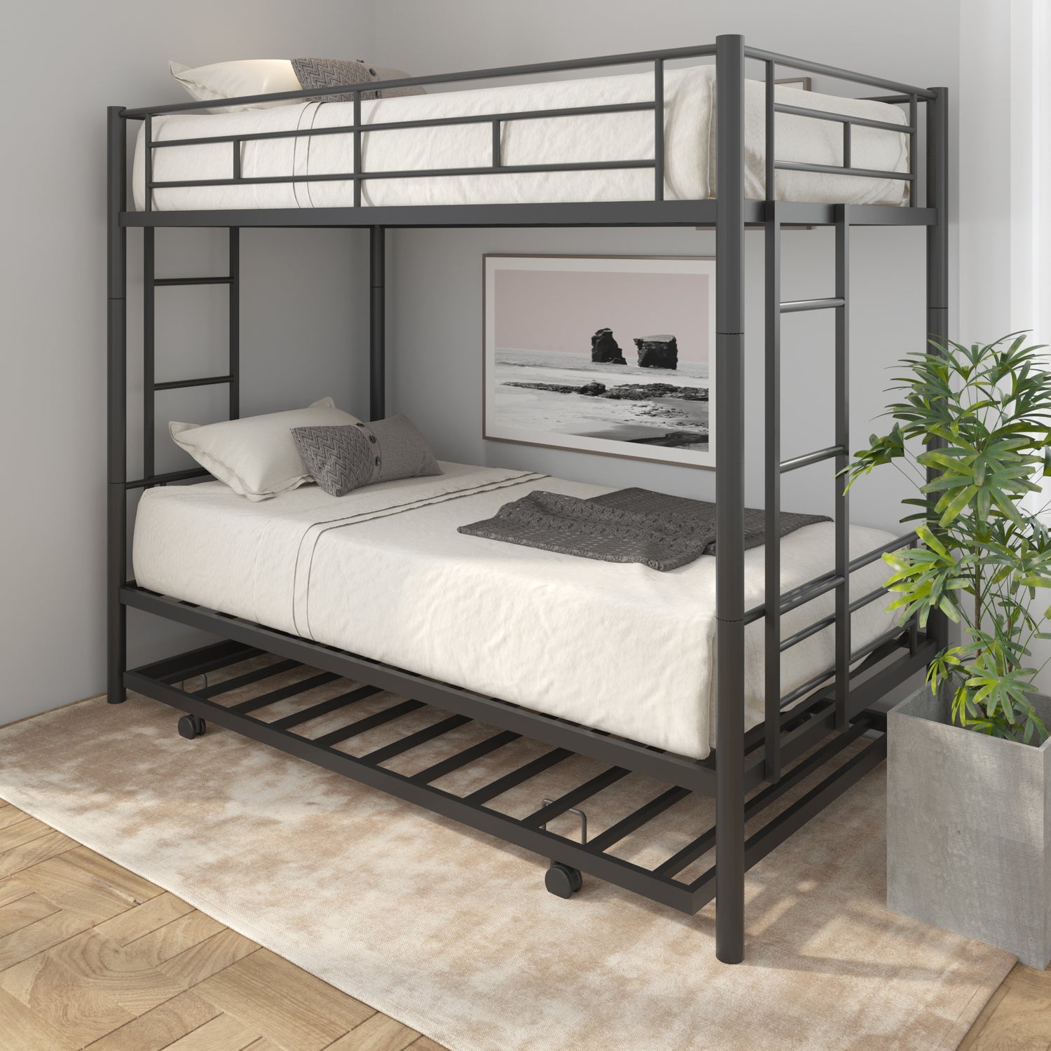 With reinforced strength and durability, this space-saving bunk bed is 20% stronger & heavier than the standard bed frame. And features sturdy solid metal construction for durability and high load capacity to ensure longevity. This bunk bed includes a ladder, and safety rails, perfect for you or your children.
