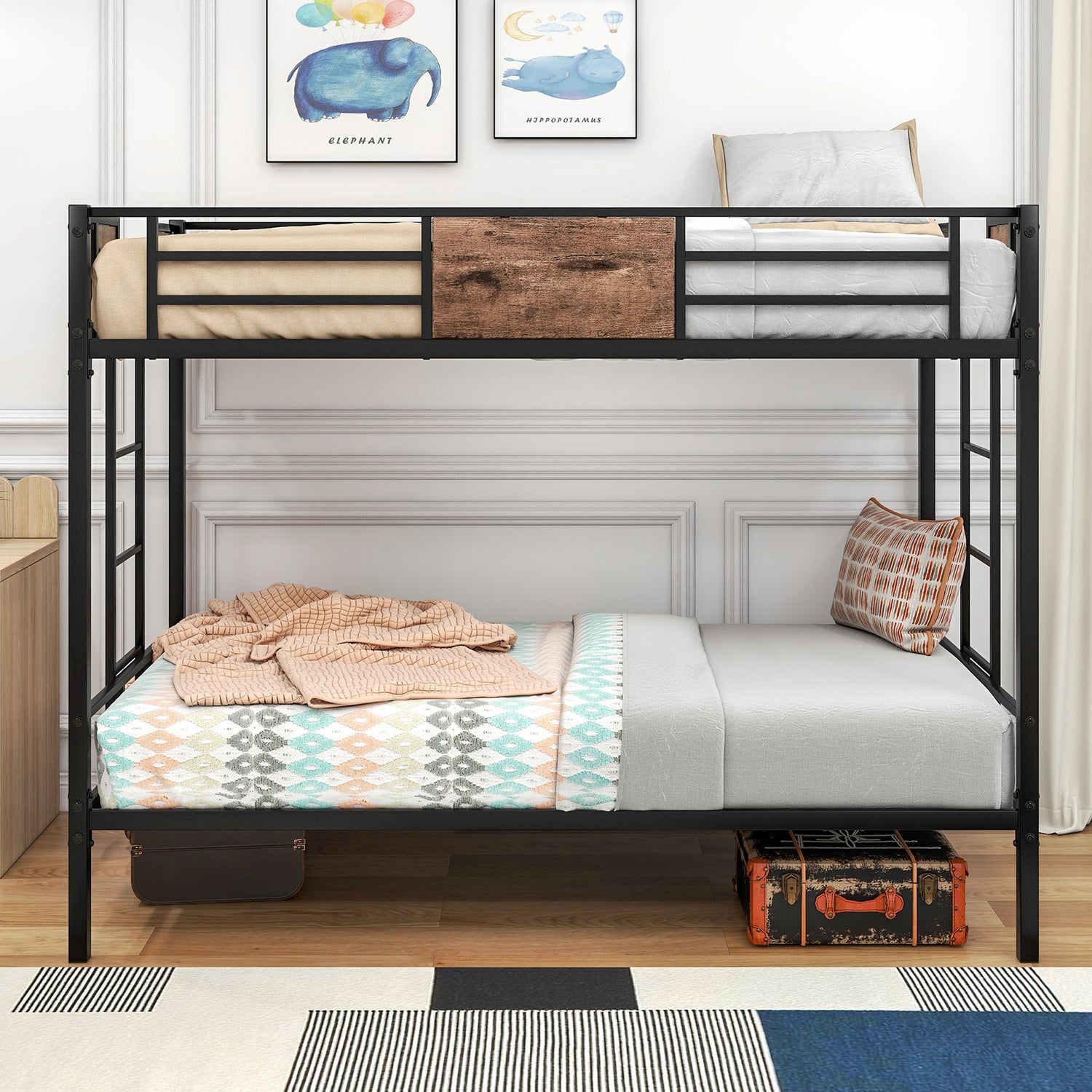 SYNGAR Metal Twin Over Twin Bunk Beds, Twin Bunk Beds for Kids Teens Adults, Industrial Bunkbed No Box Spring Required, Black