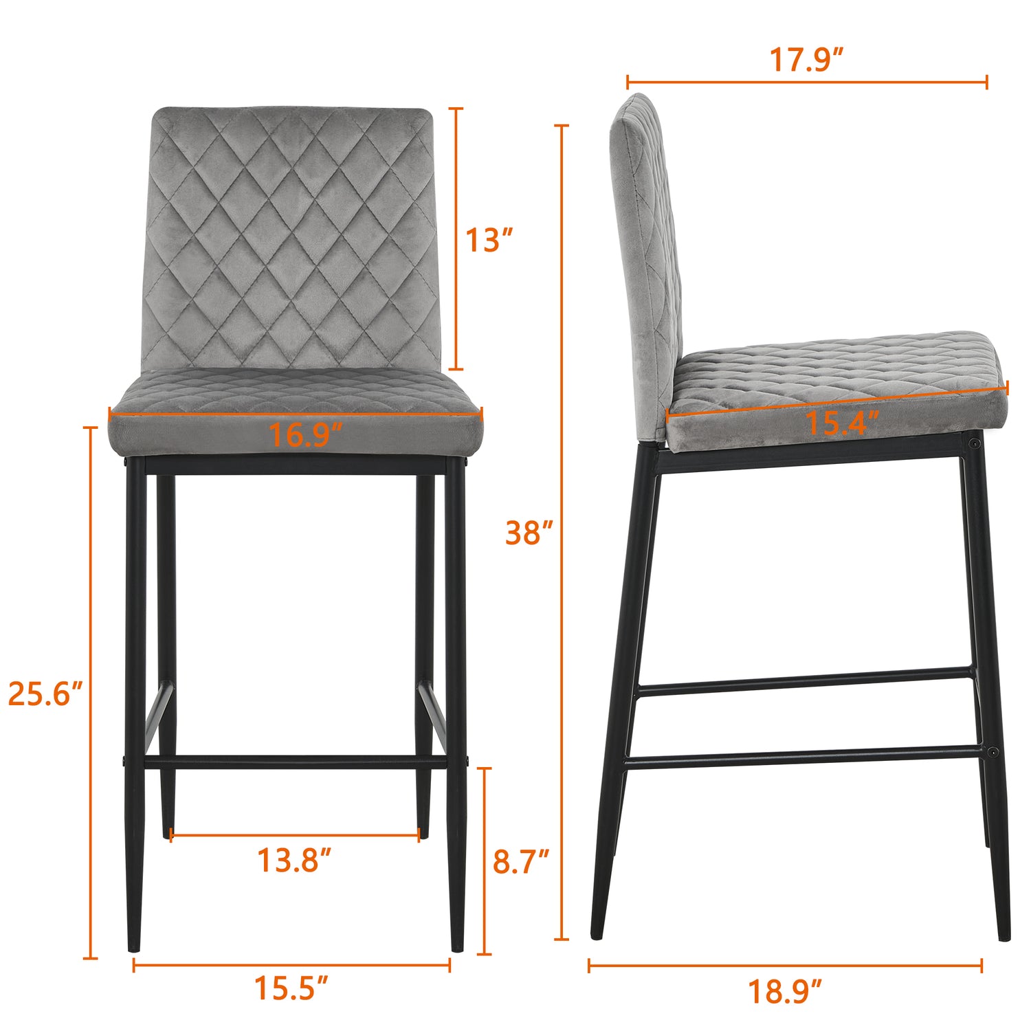 SYNGAR Modern Bar Stools Set of 2, Fabric Bar Chair with Metal Legs, Counter Height Bar Stools, Bar Chairs for Kitchen Bars Restaurants, Contemporary Tufted Barstools Set, Gray