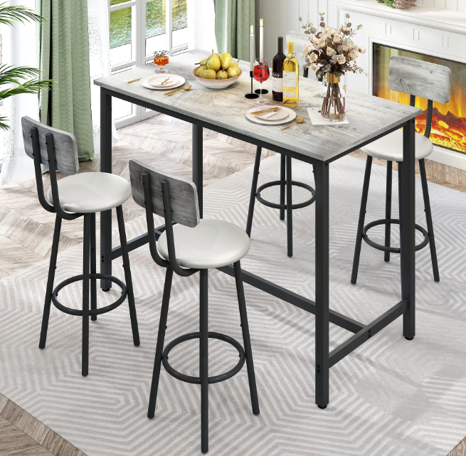 Syngar Modern Bar Table Set, Kitchen Table and Chairs for 4, 5-Piece Modern Dining Furniture Set, Gray