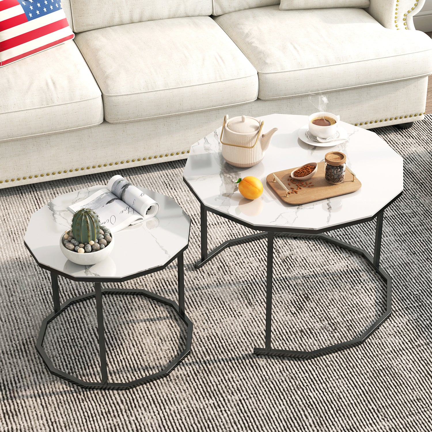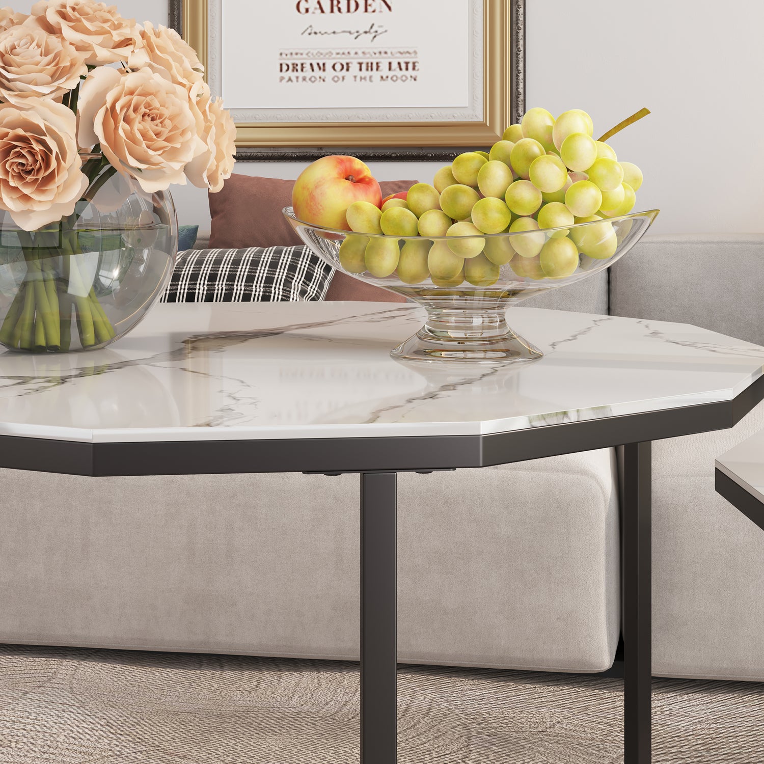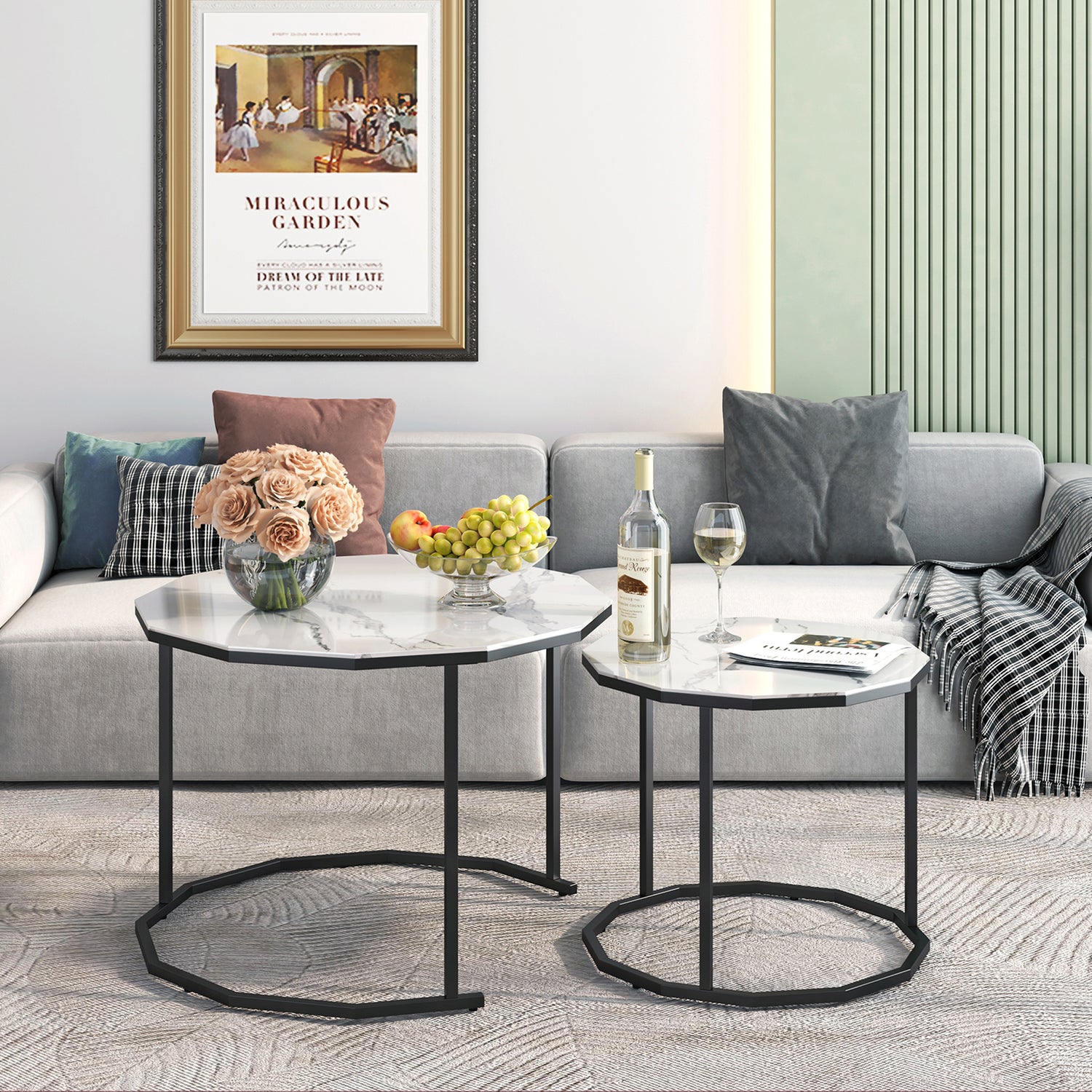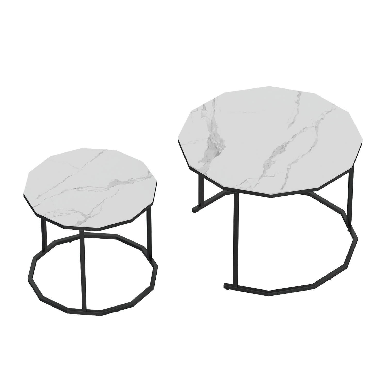 SYNGAR Modern Nesting Coffee Table Set of 2, 12-Gon Shape End Tables Stacking Living Room Accent Tables with Marble Top and Black Metal Frame, Golden Black