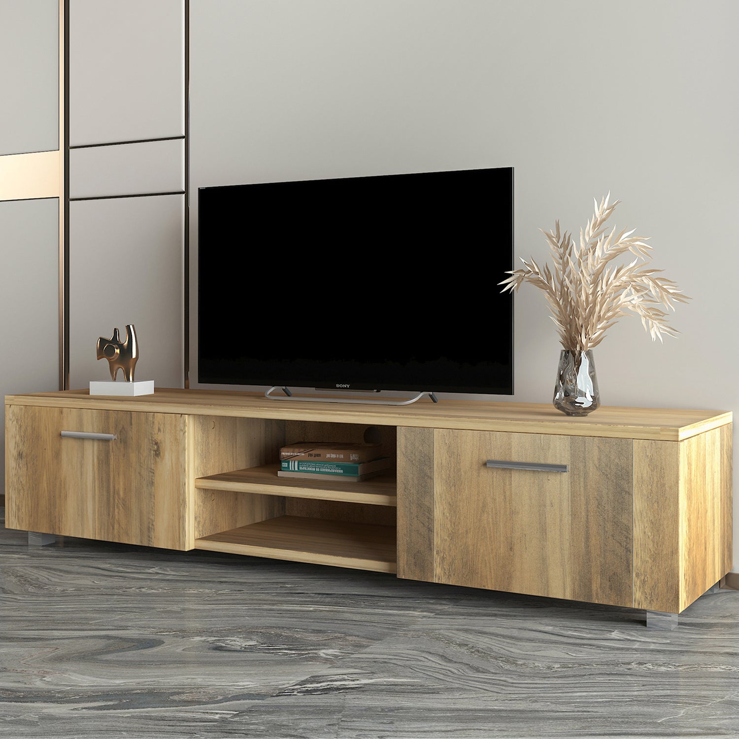 Our television stand fits for up to 70 inch TV which is suitable for your lounge room, living room, bedroom, and more places. And the TV types suitable for this TV stand include Samsung, Sony, LG, Sharp, Insignia, Vizio, Haier, Toshiba, Element, TCL, etc. This TV stand for flat screens fits well with most home decors and is also a perfect housewarming gift for friends and family.