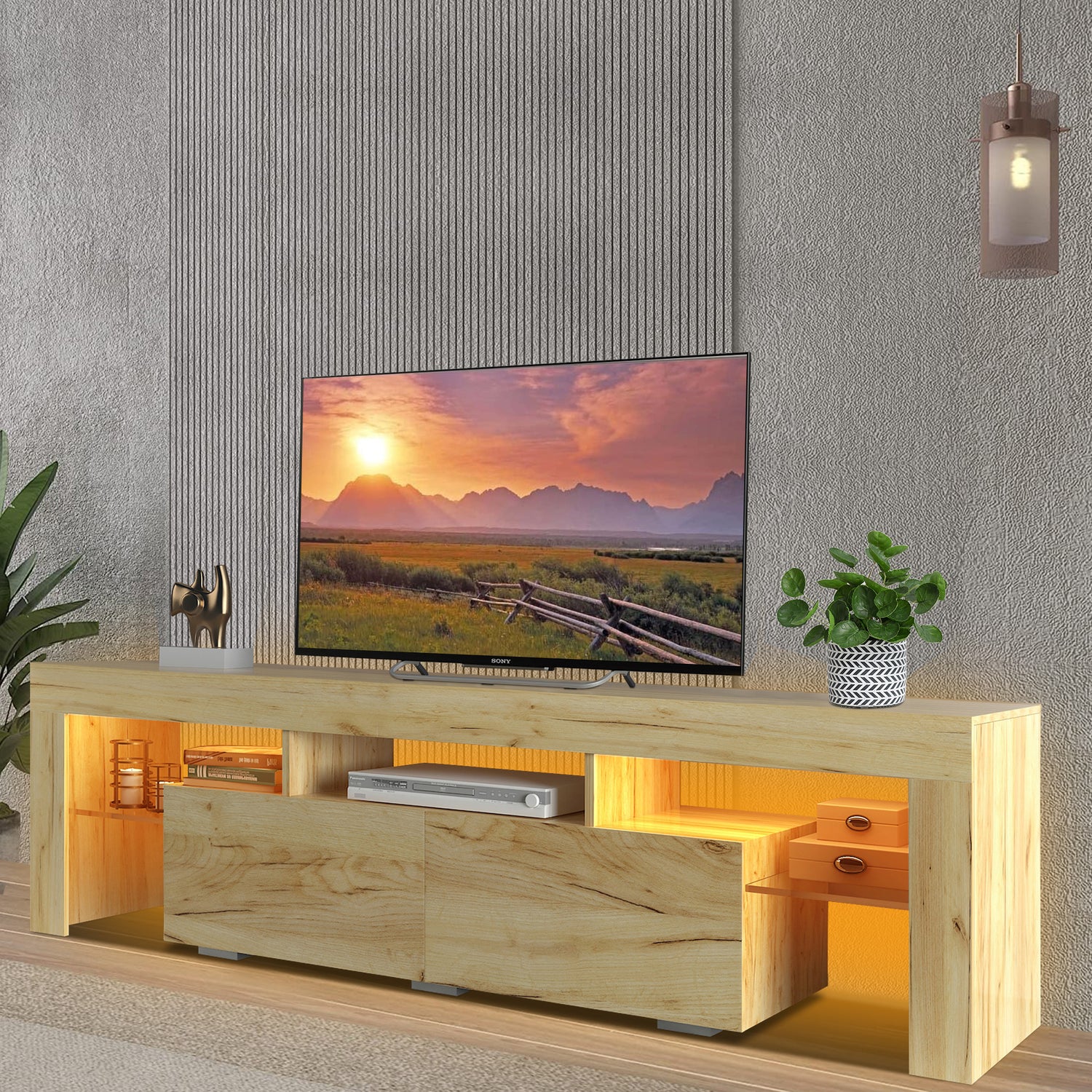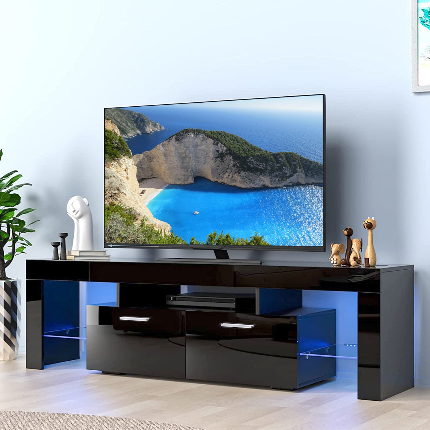 The TV cabinet is made of Solid quality particleboard, the surface is smooth and easy to clean, and brings a fashionable feeling. The 16-color remote-controlled LED lights with modern characteristics will bring a warm feeling to your home.