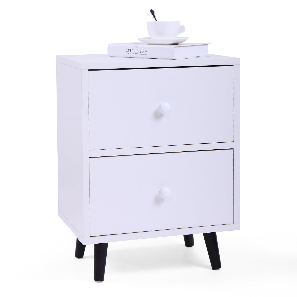 SYNGAR 2-piece bedside table will be the perfect complement to your bedroom! The two-drawer bedside table provides enough space for the sundries in your room. The solid wood stool legs support the entire bedside table powerfully. This two-piece bedside table can be used for a long time. The white finish of this bedside table is elegant and exquisite, and it can be easily integrated into your bedroom.