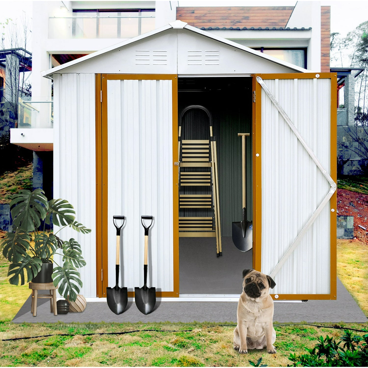 Store and protect your garden supplies in this durable patio storage shed! Constructed from electro-galvanized steel, this 4' x 6' metal shed is much stronger than your average steel shed. Thick wall panels are waterproof and moisture resistant. When securely assembled, it will provide extra protection from inclement weather. This 6 x 4 outdoor storage shed is perfect for storing your garden or backyard tools, lawnmowers, litter boxes, bikes, pool supplies, and other garden furniture.