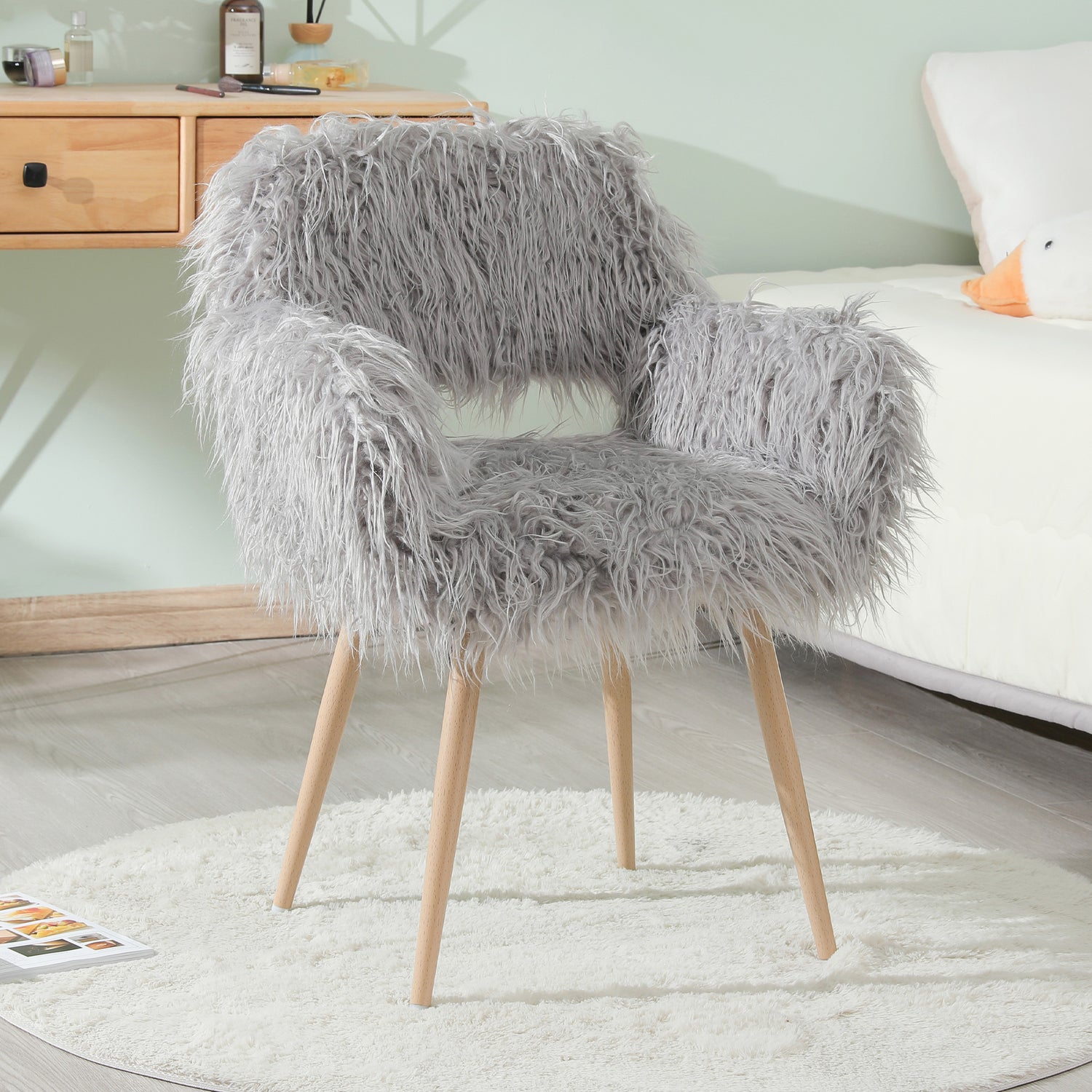 Introducing the SYNGAR Faux Fur Upholstered Makeup Chair, a blend of elegance and comfort that adds a touch of sophistication to any room. This plush chair features a soft cushion seat and back, making it an ideal addition to your vanity, dining room, guest room, or home office. Its straight metal tube legs are designed with a wood-style pattern and equipped with soft rubber floor protectors, ensuring stability and protecting your flooring. The delicate texture of the fabric is gentle on the skin, providing a luxurious seating experience. Easy to assemble with all necessary hardware and instructions included, this chair is perfect for modern urban women seeking both style and functionality in their bedroom or workspace. Elevate your home decor with the SYNGAR Faux Fur Upholstered Makeup Chair, available now at Walmart online.