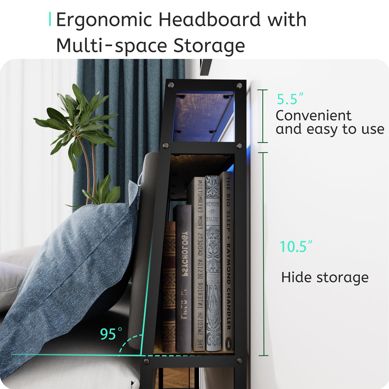 The biggest highlight of this bed is that there is a storage shelf at the head of the bed, and it has 2 USB ports. You can use the computer or charge your mobile phone on the bed while placing some commonly used simple items. The under-bed space is available for you to store your stuff, which is convenient and space-saving.