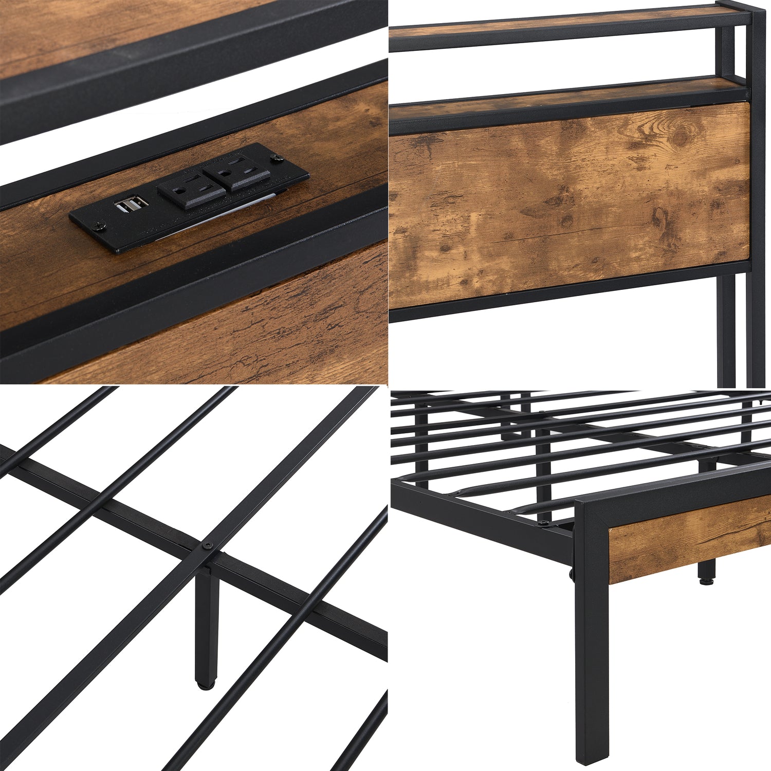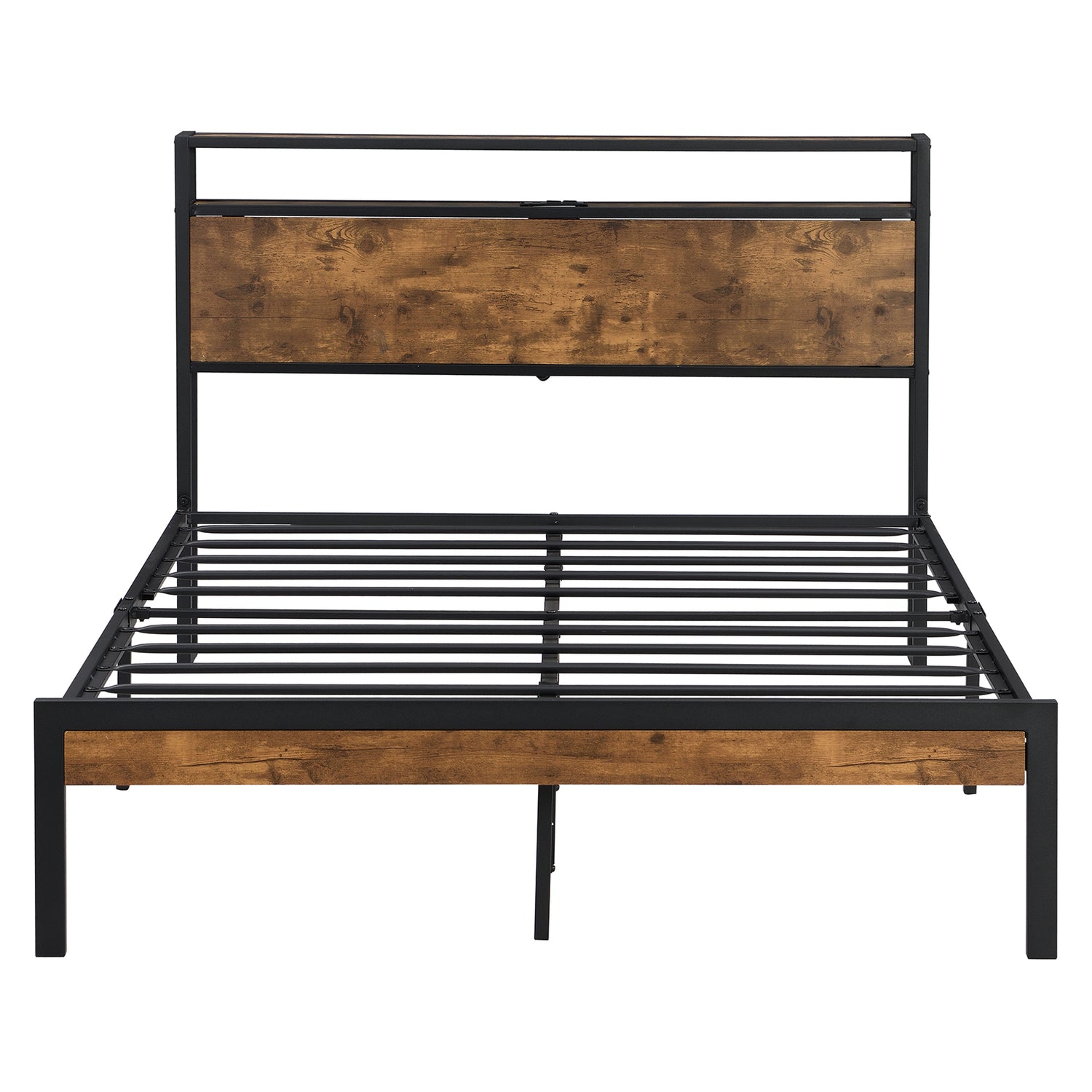 SYNGAR platform bed with beautiful headboard features a perfectly classical appearance and works well with any style of home décor. The contrast of wooden panels and metal frames takes a strong rustic flair suitable for industrial, rustic, transitional, and farmhouse home decor. The wood grain pattern adds a natural accent and balances the coolness of the metal.