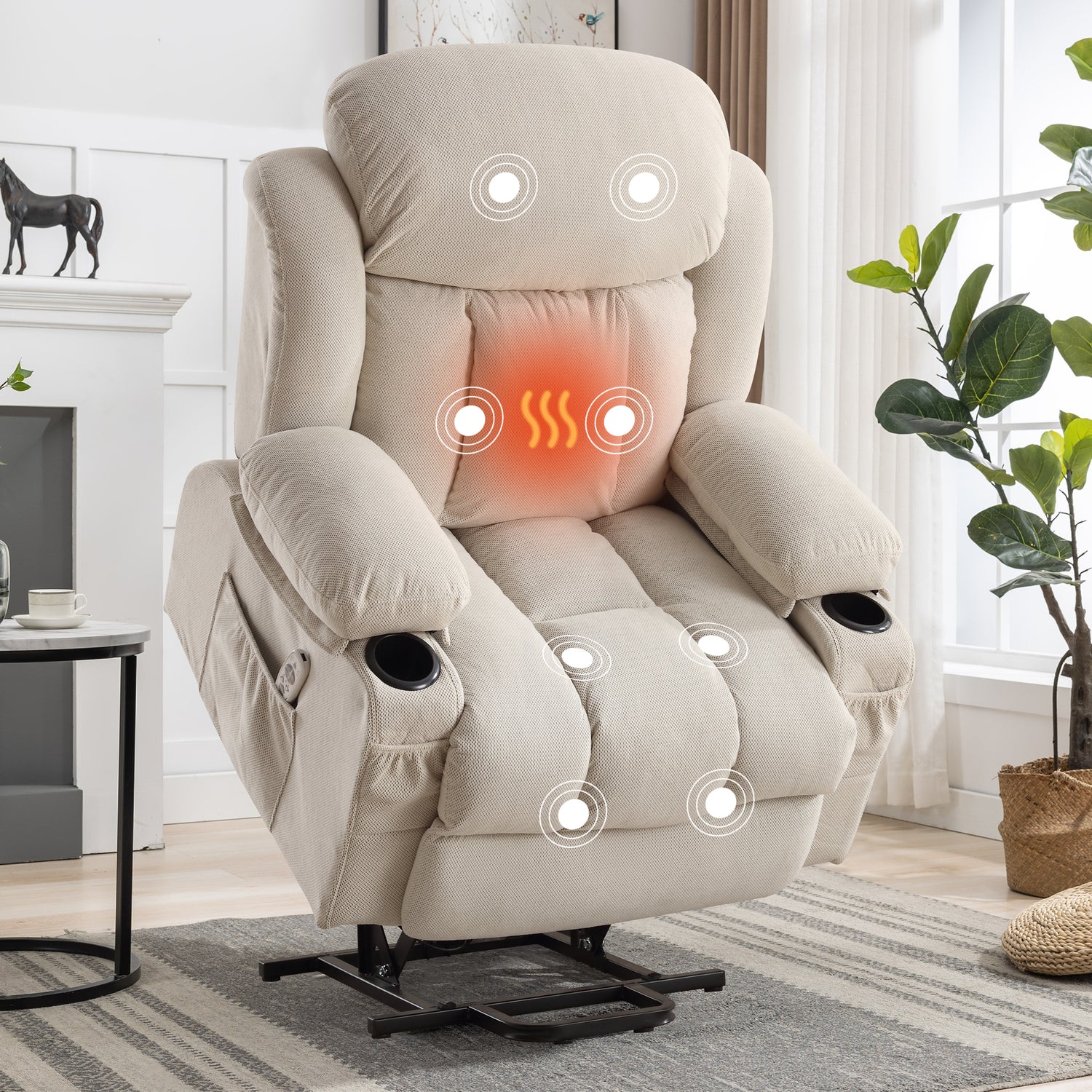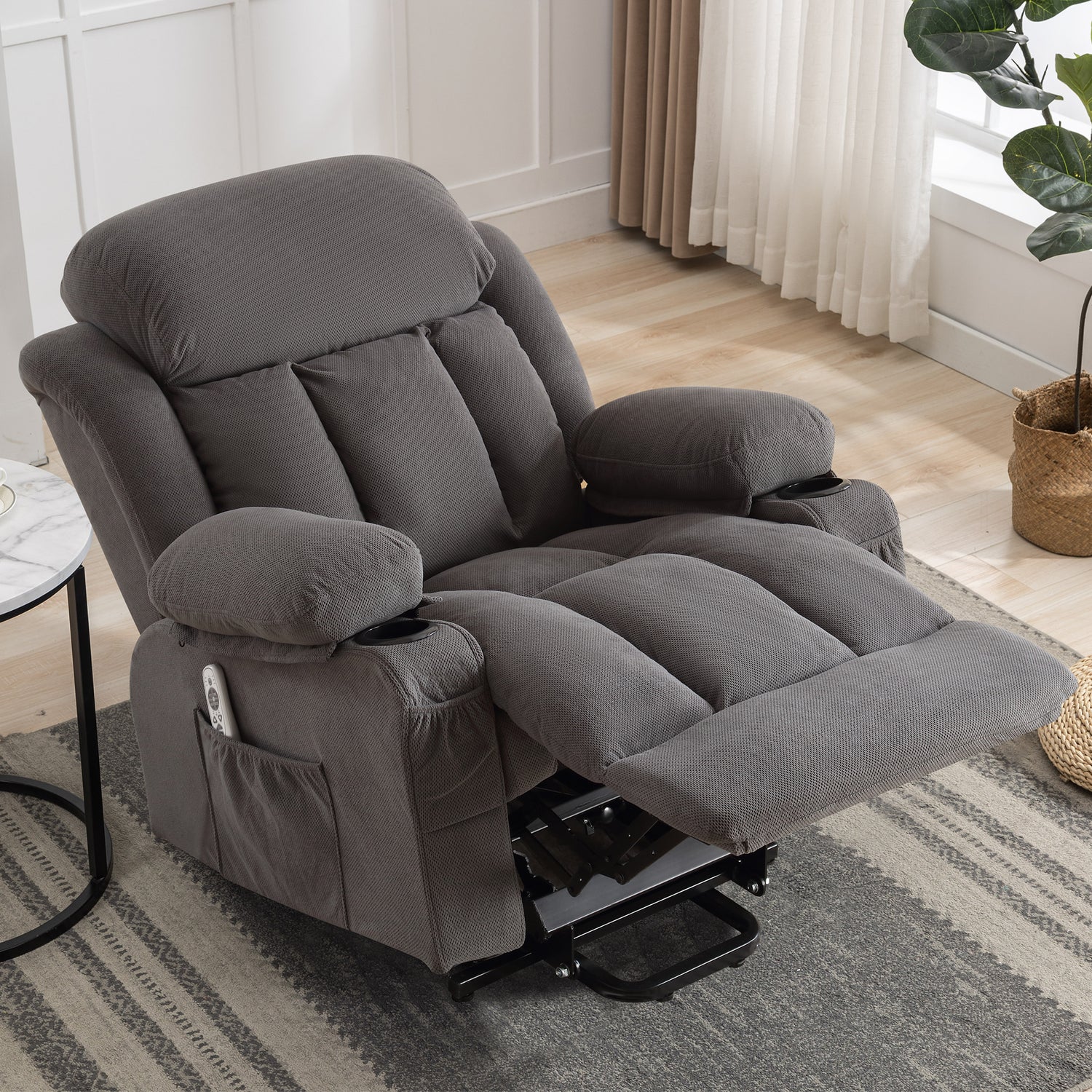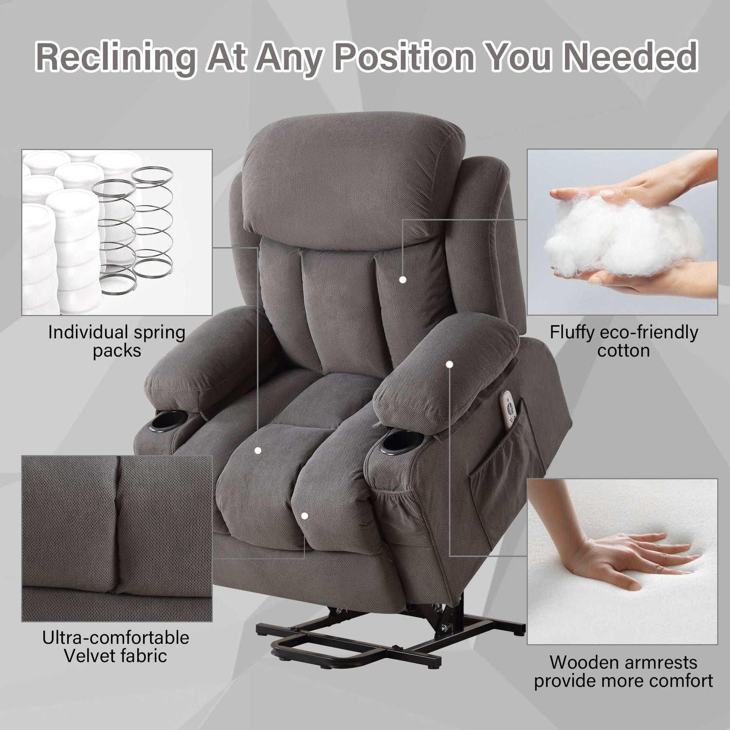 SYNGAR Power Lift Recliner Chair for Living Room, Electric Recliner Chair with Heat and Massage Function, USB Charge Port and Cup Holders, Oversized Velvet Reclining Sofa for Home Theater, Gray