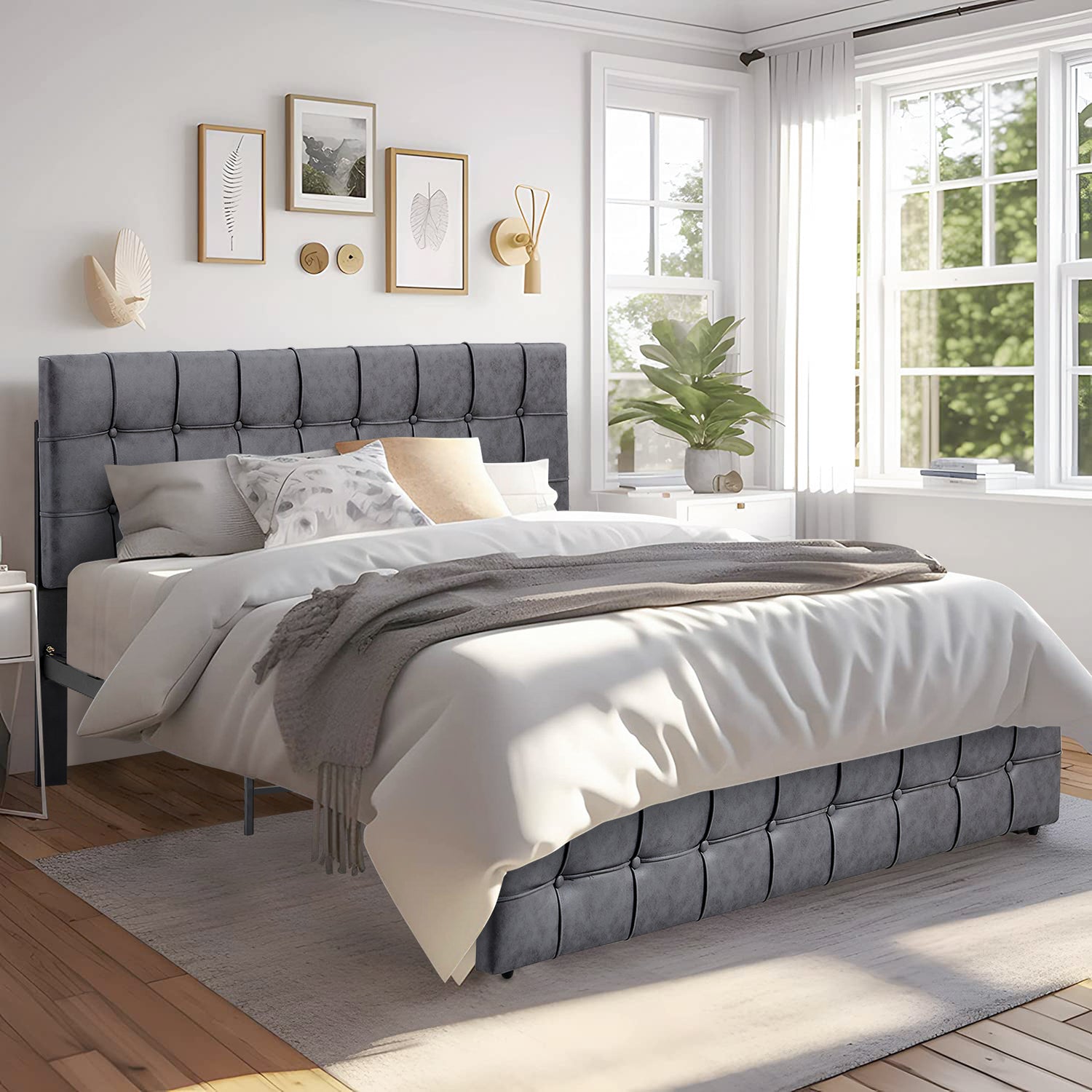 Modern and Elegant Style - This upholstered platform bed frame has an elegant look that will complement any color scheme and the classical design will bring a warm feeling to your bedrooms or guest rooms. A beautiful button-tufted headboard and footboard make this bed frame classic and timeless.