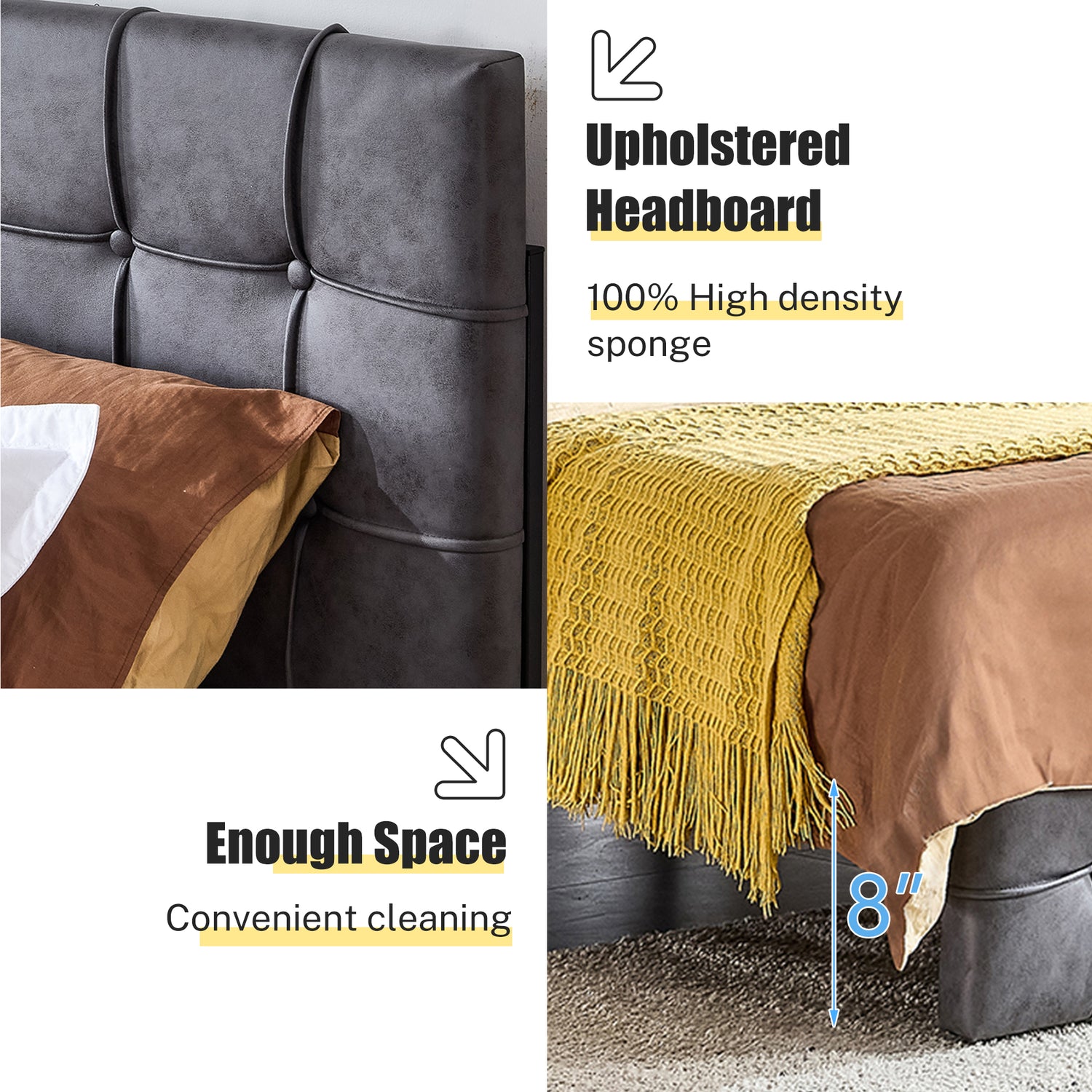 Our upholstered platform bed frame with solid wood support provides a solid foundation for a good night's sleep. Including a comfortable and beautiful button tufted headboard and footboard, strong wood slats, metal frame, wood legs, and center support legs of the bed to support your memory Sponge, latex, or spring mattress (not included). With its elegant style and Sponge-filled polyester upholstered headboard and footboard, this bed frame is a can’t-miss centerpiece for any bedroom that doesn’t sacrifice stability or comfort. And the height of the headboard can be adjusted in three heights: 39.37 inches, 43.31 inches, and 47.24 inches, you can adjust it according to your needs to fit your mattress.