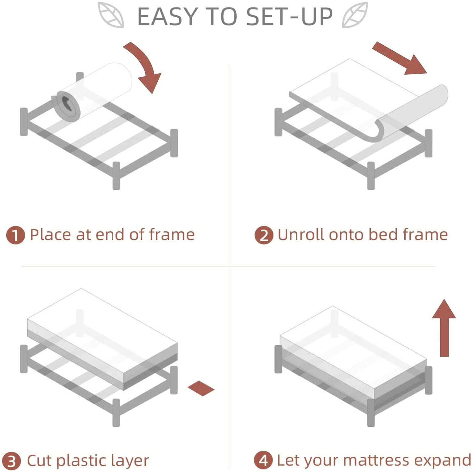 ① Place the mattress roll at one end of the bed frame.