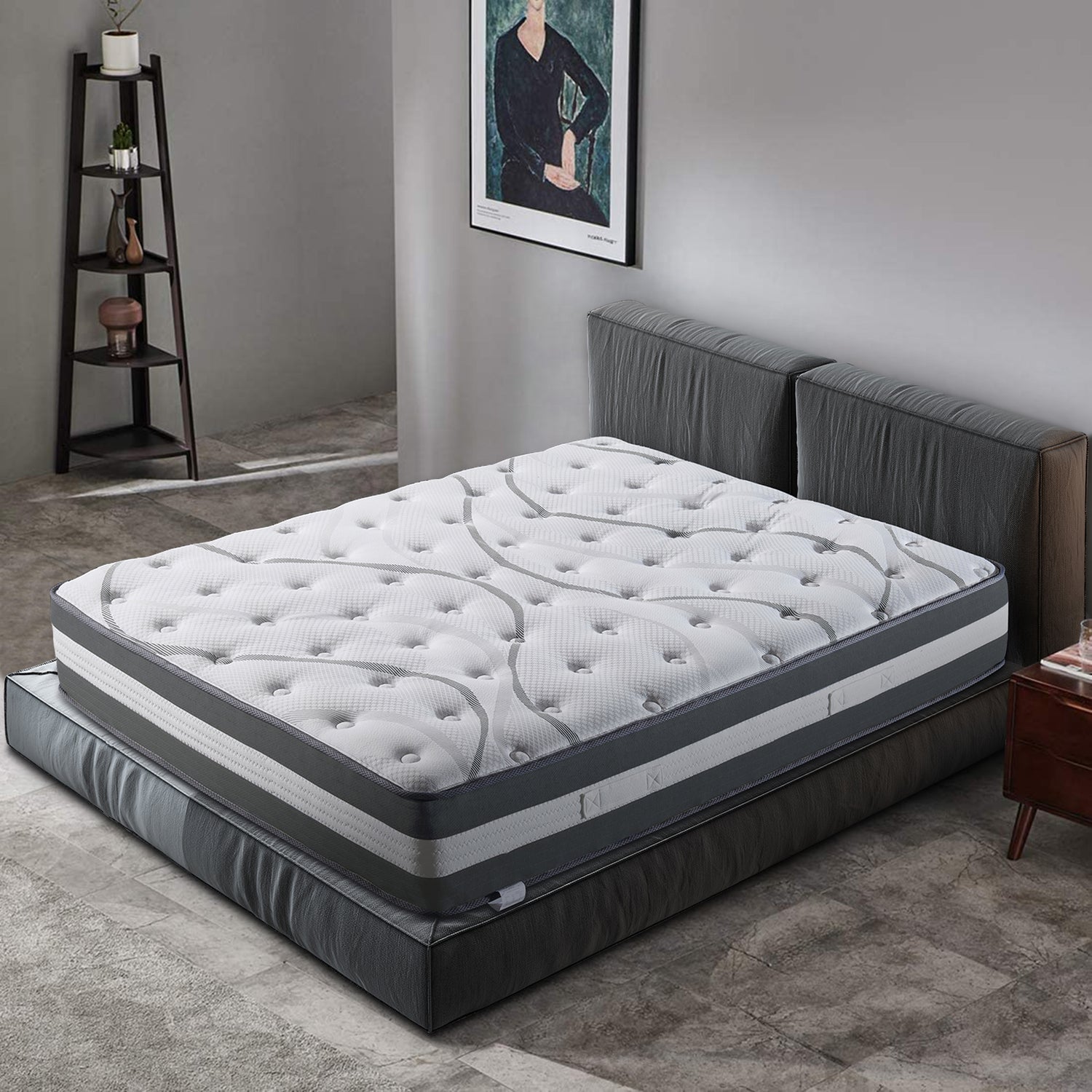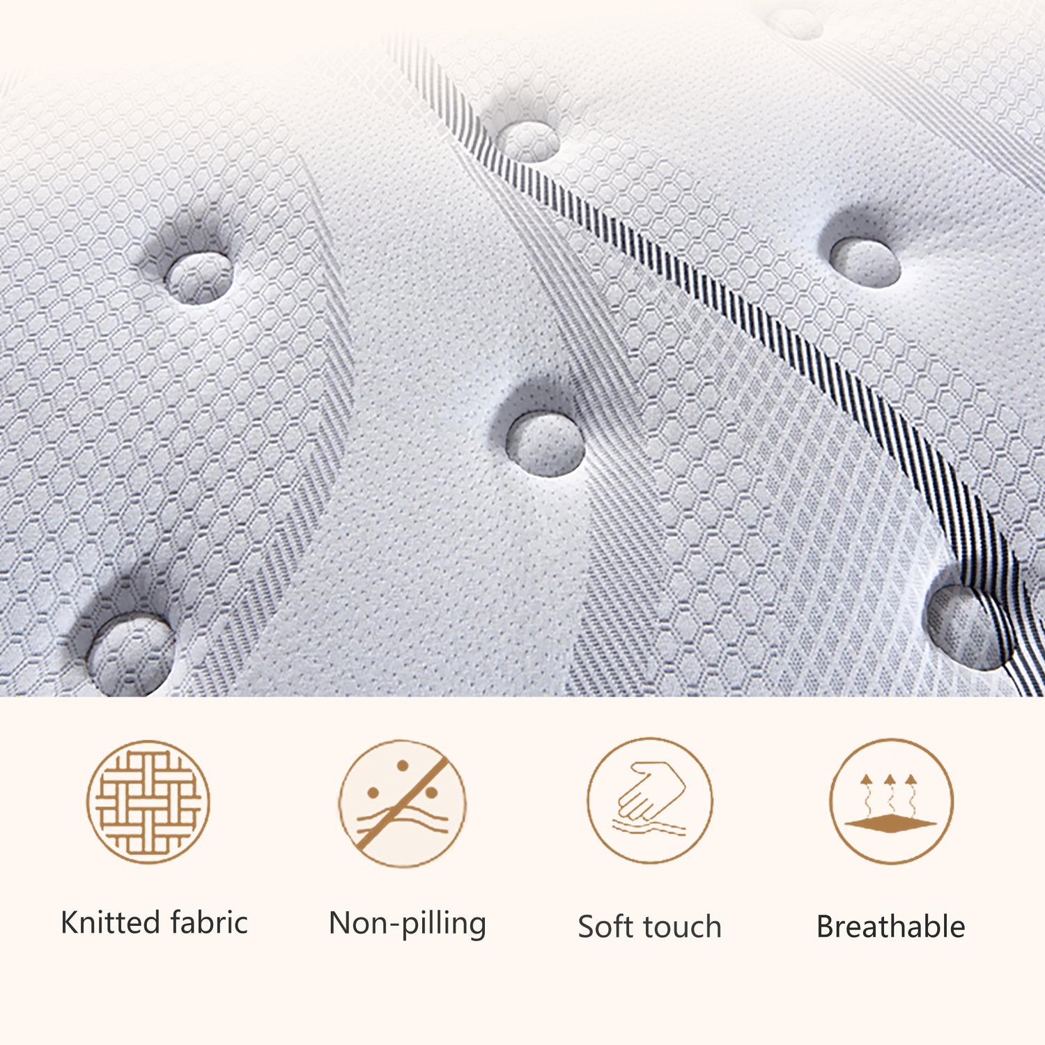 The top foam support provides high elasticity and resilience. The buffer isolation layer is distributed on the support layer, which can effectively reduce the vibration caused by spring rebound when turning over and the spring feel is small. The breathable and skin-friendly fabric covering is non-irritating and will not play. The flame-retardant fiber after special fire-proof treatment is self-extinguishing, helps regulate body temperature, takes away excess heat from the body, reduces bacterial growth, and creates a healthy and comfortable sleep. More importantly, the support system is composed of a separate pocket spring coil, which is no noise, relieves pressure, and allows you to enjoy a better night of rest without interference.