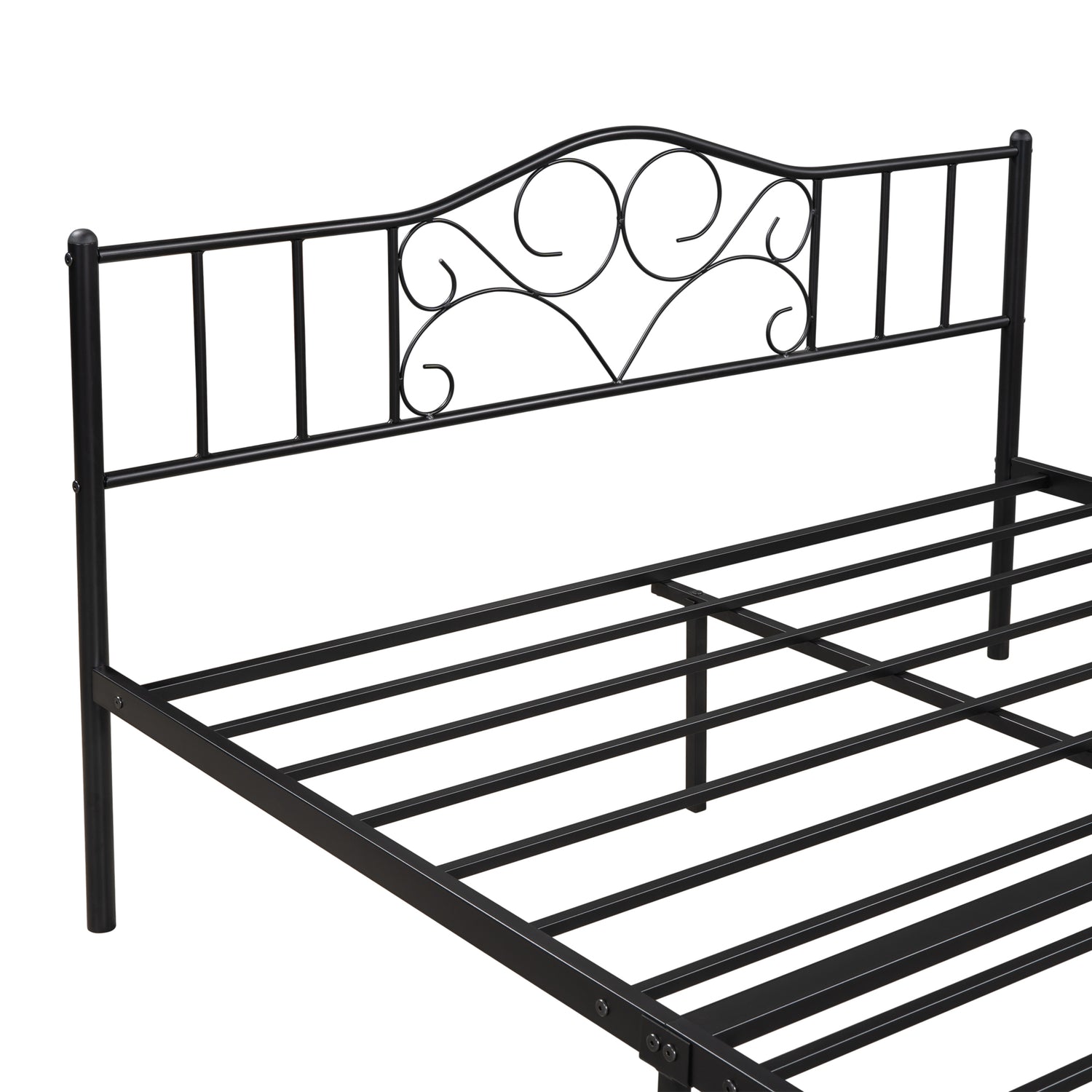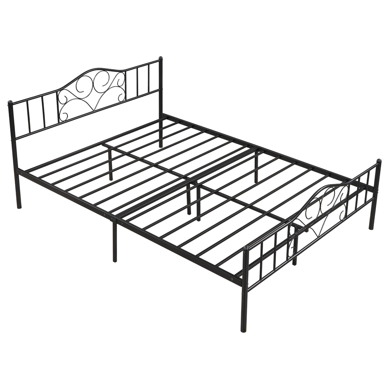 SYNGAR's new minimalist style metal platform bed frame is the perfect addition to any bedroom, this platform bed frame uses simple lines and black metal to create a modern feel, suitable for every style of bedroom from retro, modern, luxury, and more, this bed frame is a heavy-duty Constructed from steel, 16 metal slats, and a central support rod provide strong and powerful support. The headboard frame allowing the spine to fit loosely against the backrest for comfort when reclined for better relaxation. This metal queen bed frame is scientifically designed so you can assemble it in 30 minutes.
