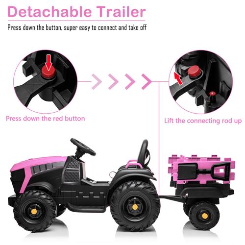 This electric ride on tractor comes with a large trailer, which can be used to transport toys, flowers, straw, etc for kids. Through riding this tractor, children can clean the garden with their parents and enjoy the happy parent-child time.