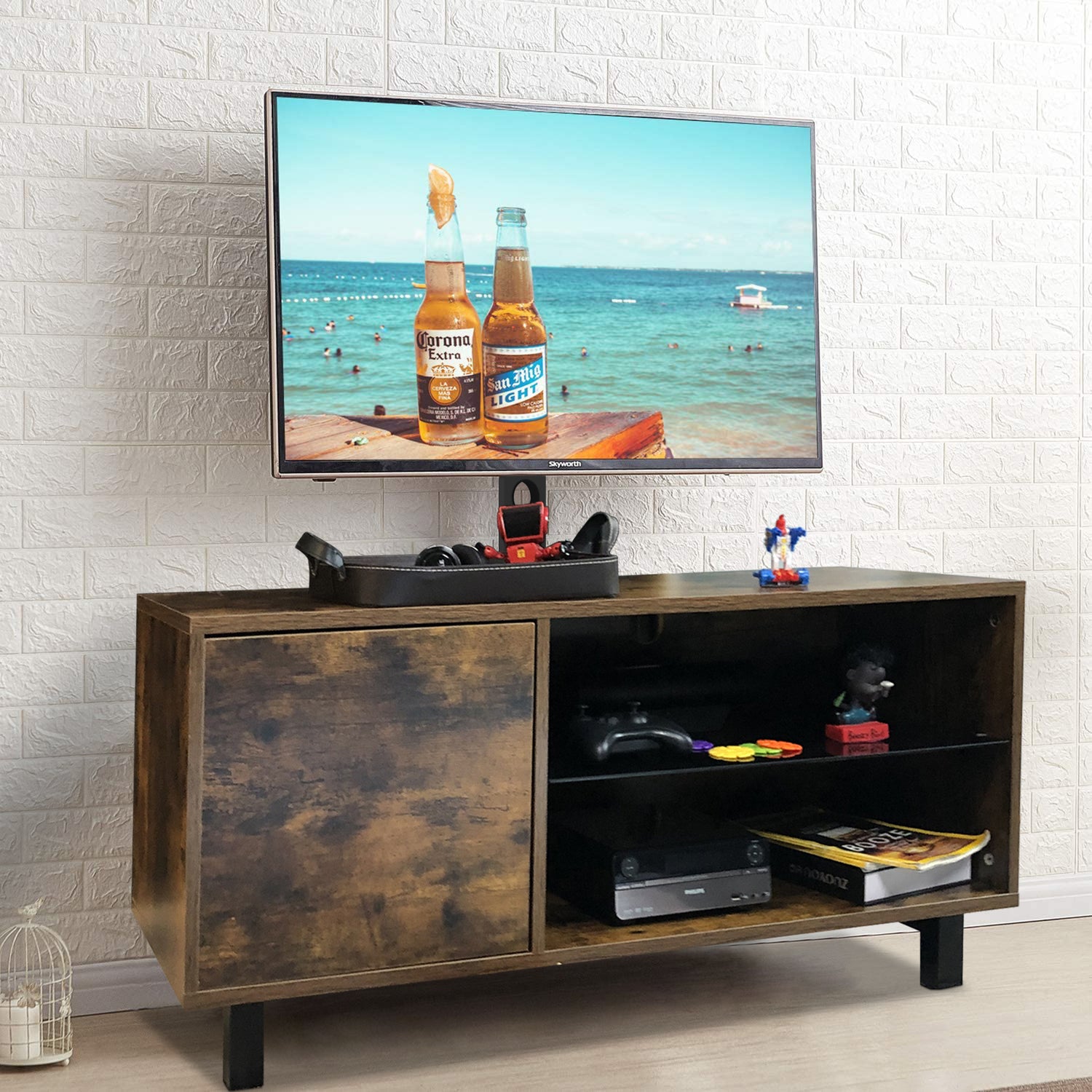 SYNGAR Rustic Brown Farmhouse TV Stand with Mount for 32-65 inch TVs, 2 in 1 TV Mount Stand Table Storage Cabinet Entertainment Center, Swivel Floor TV Stand Mount for Living Room Bedroom Office