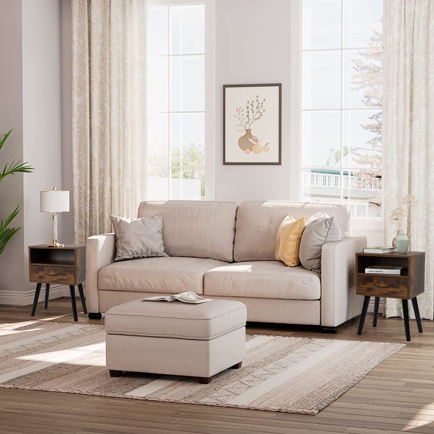 SYNGAR elegant and simple 2PCS nightstand will undoubtedly fit into your bedroom easily. with rustic looking and popular design, it is a stylish and functional home piece to upgrade your bedroom, dorm, living room, and office. This nightstand with open shelves and drawers provides a perfect place for your sundries. This side table is a good choice for the bedside and sofa side!