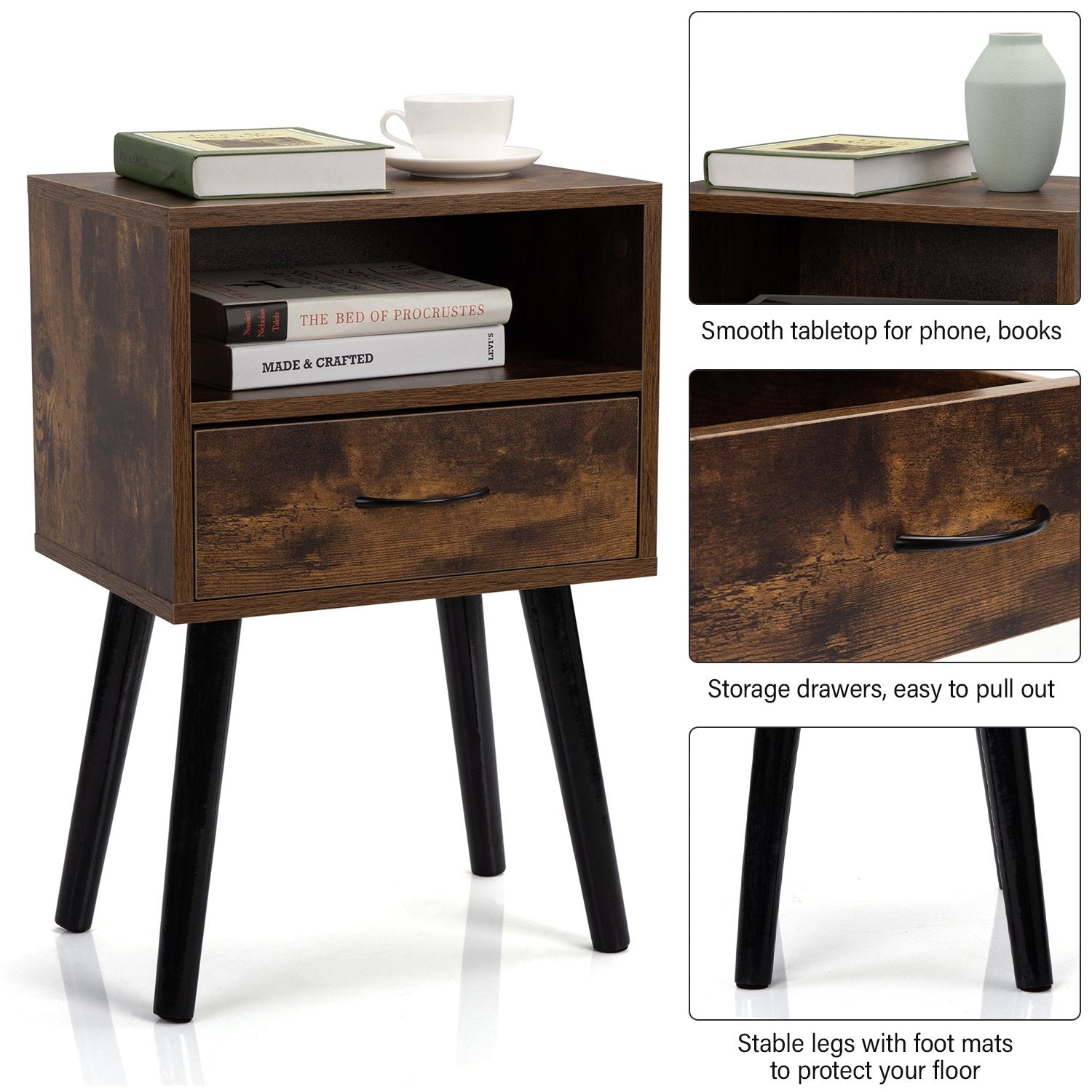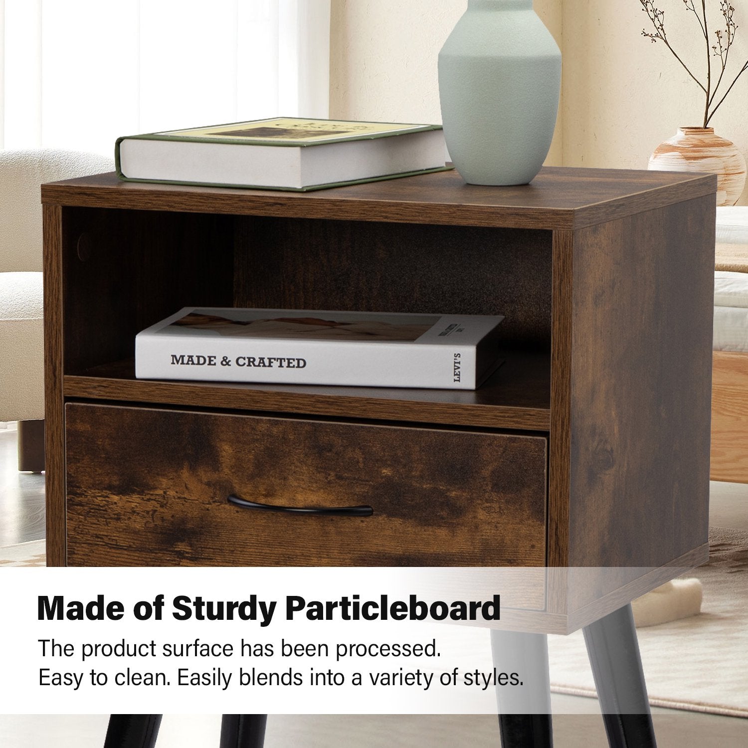 【Durable and Sturdy】This bedside table is made of high-quality Particleboard, which is firm and strong. After treatment, the finish will not be easily scratched.