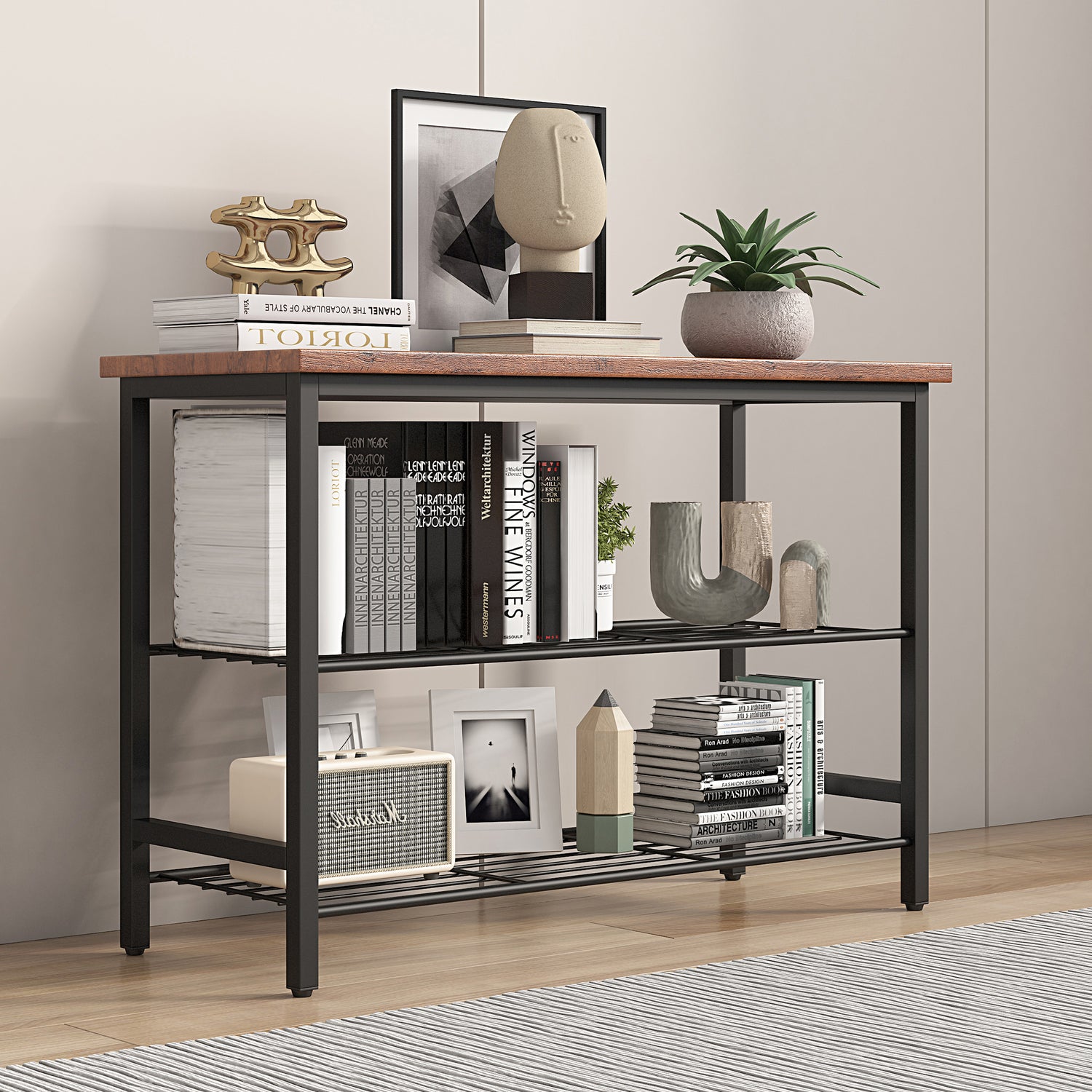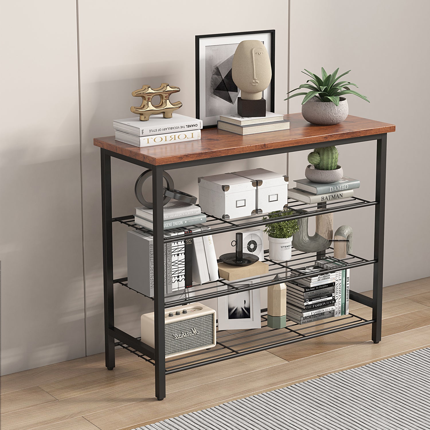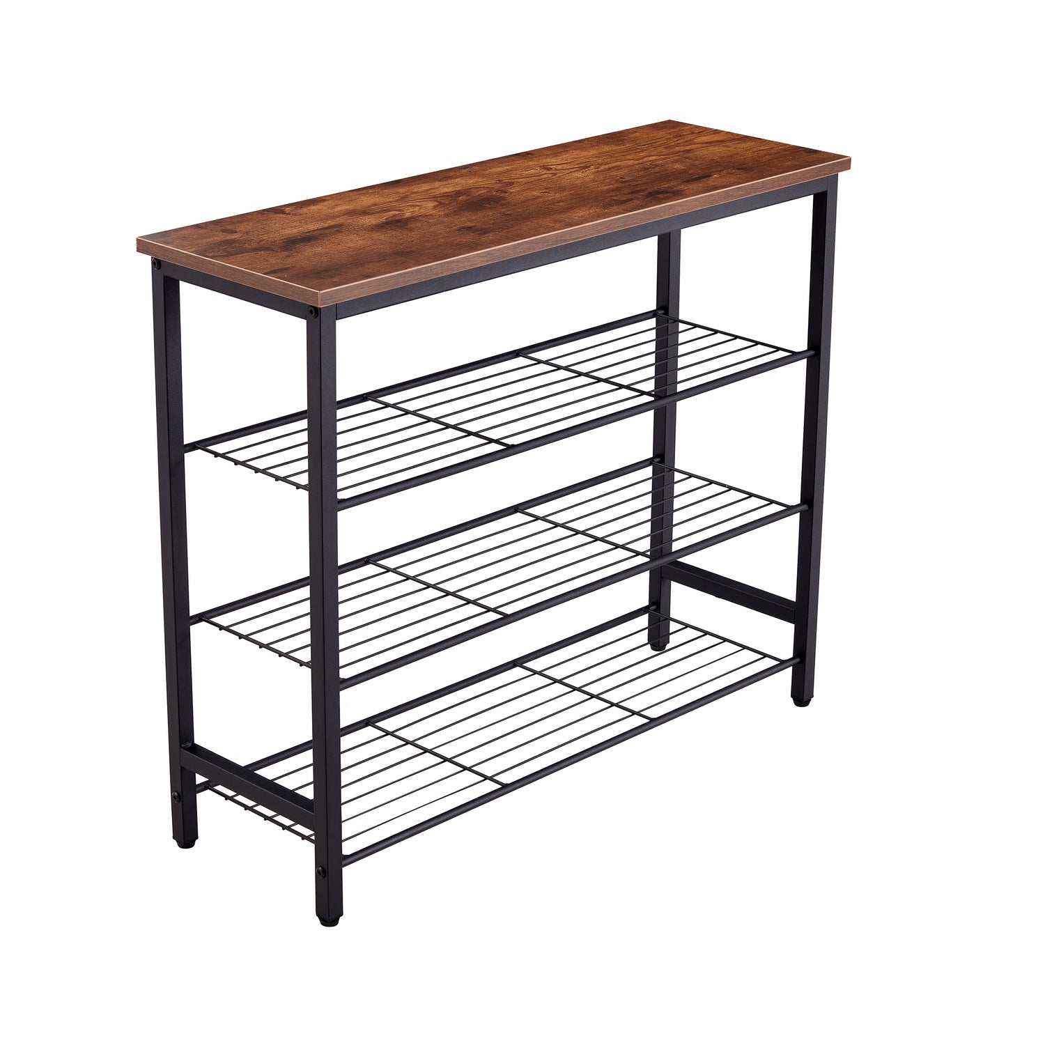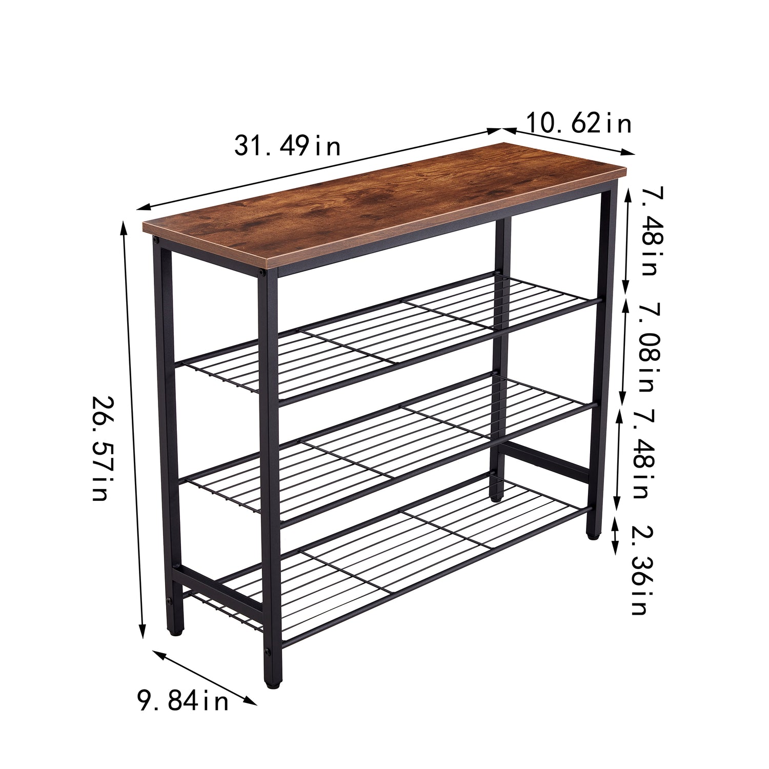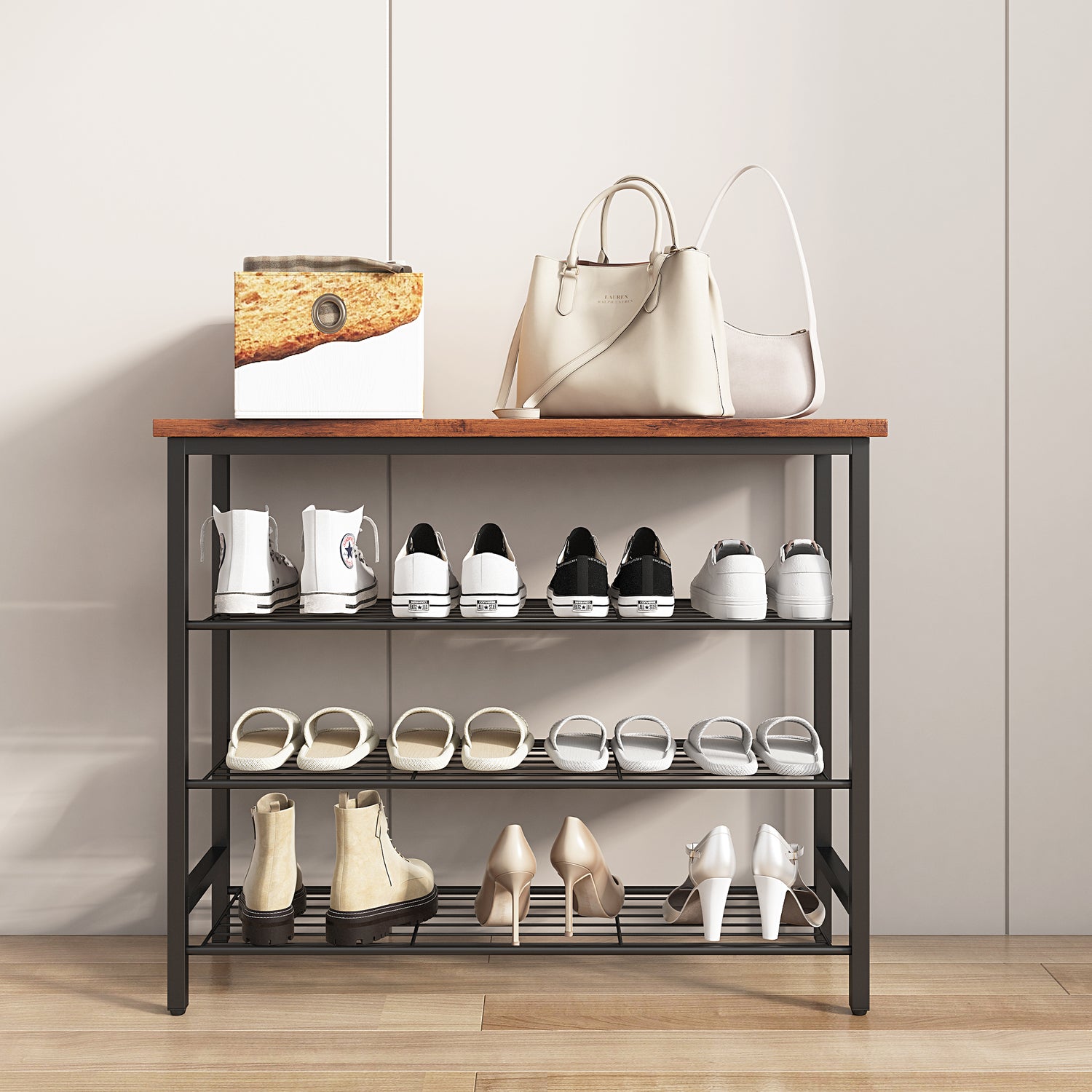 SYNGAR Shoe Storage Bench, 4-Tier Metal Shoe Bench with Mesh Shelves and Wood Top for Living Room and Hallway, Shoe Rack for Entryway with Bench, 31"x 10"x 26", Easy Assembly, Tiger Color
