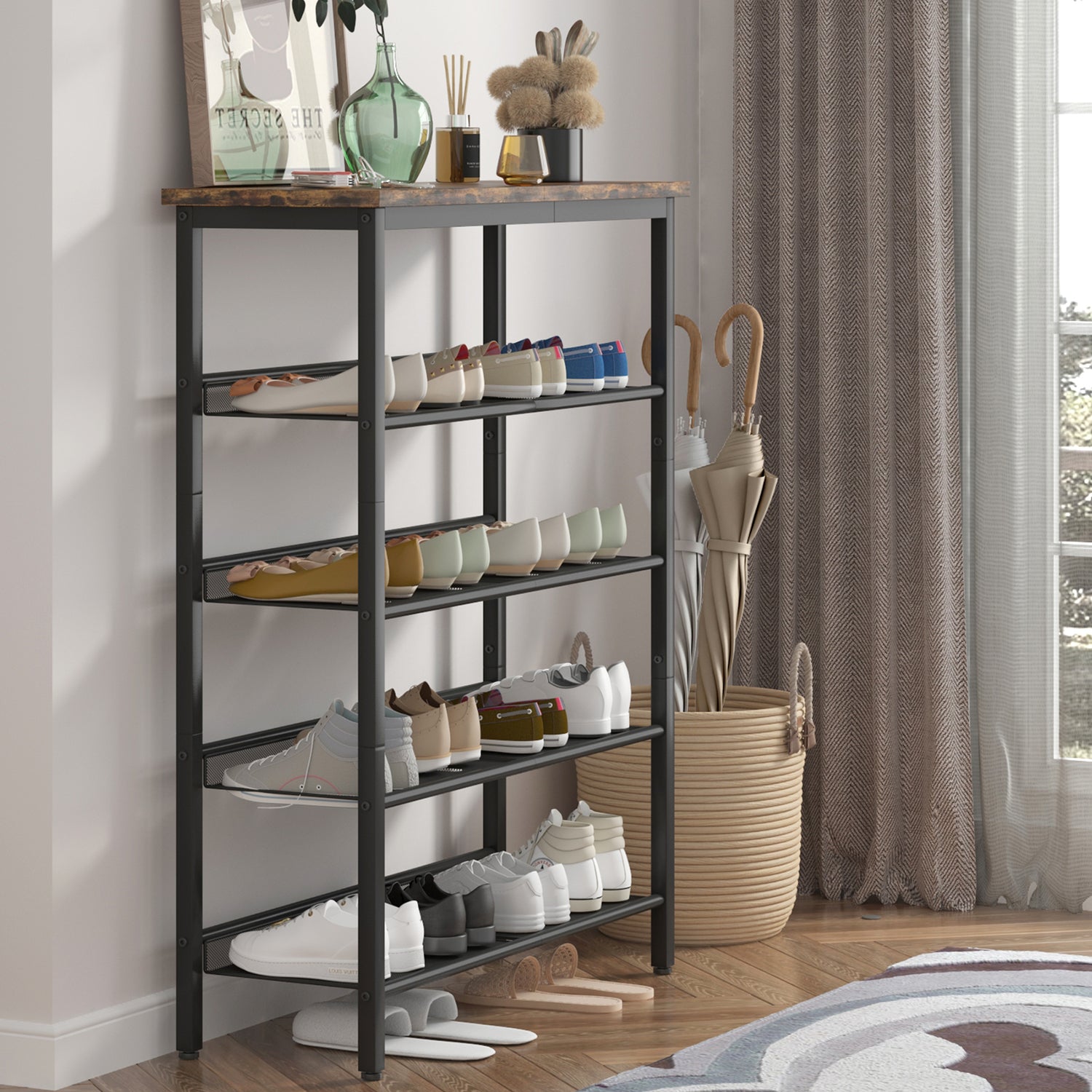 Organize your footwear with the SYNGAR 4-Tier Metal Shoe Rack. This modern, multifunctional shoe storage shelf features a sturdy MDF top board, providing both durability and a stylish touch to any room. With its four spacious tiers, it can accommodate multiple pairs of shoes, making it ideal for families or shoe enthusiasts. The sleek metal frame ensures stability and longevity, while the MDF top board offers additional storage or display space. Perfect for entryways, closets, or bedrooms, this shoe rack combines functionality with a contemporary design to keep your space neat and attractive.